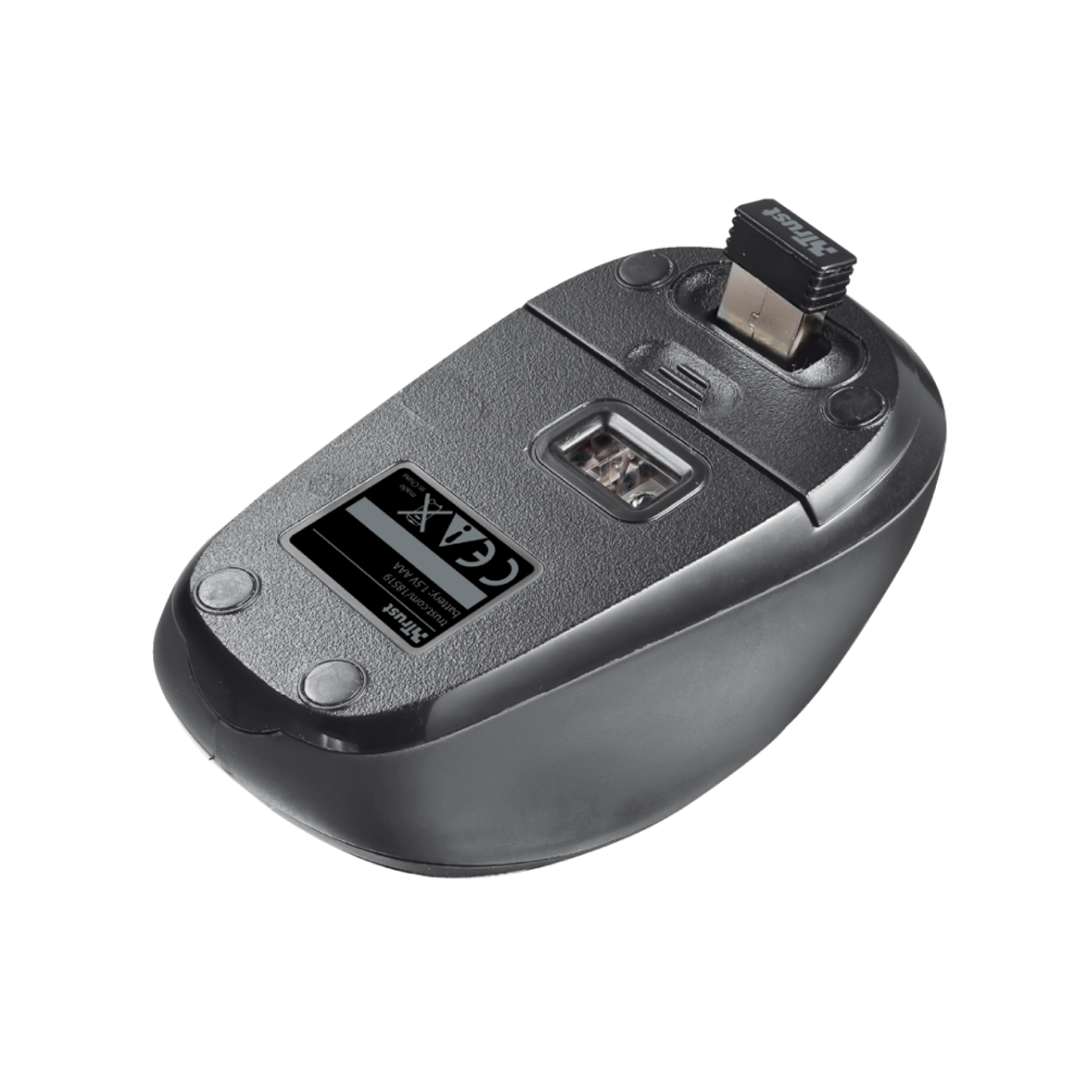Компактная мышь беспроводная Trust Yvi Mini в стильном черном корпусе обладает небольшими размерами и классическим функционалом. Устройство состоит из 4 кнопок и оптического светодиодного сенсора, функционирующего с разрешением 800 и 1600 dpi. Использовать компактную беспроводную мышь Trust Yvi FX Wireless Mouse удобно и правой, и левой рукой. Радиус беспроводного подключения для компьютерного аксессуара составляет 8 м. Еще одно достоинство модели – в возможности работать до 180 дней от батарейки типа ААА.