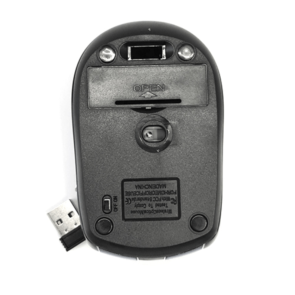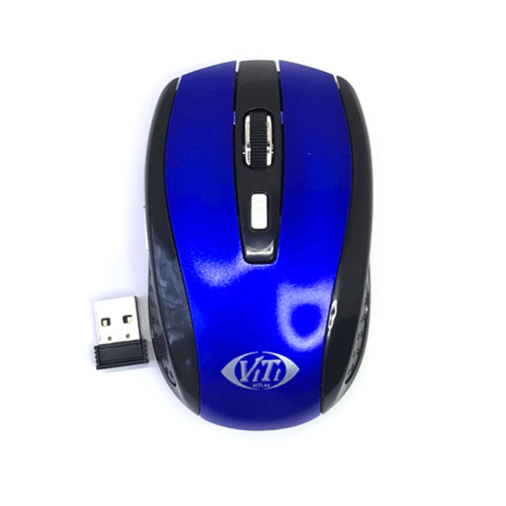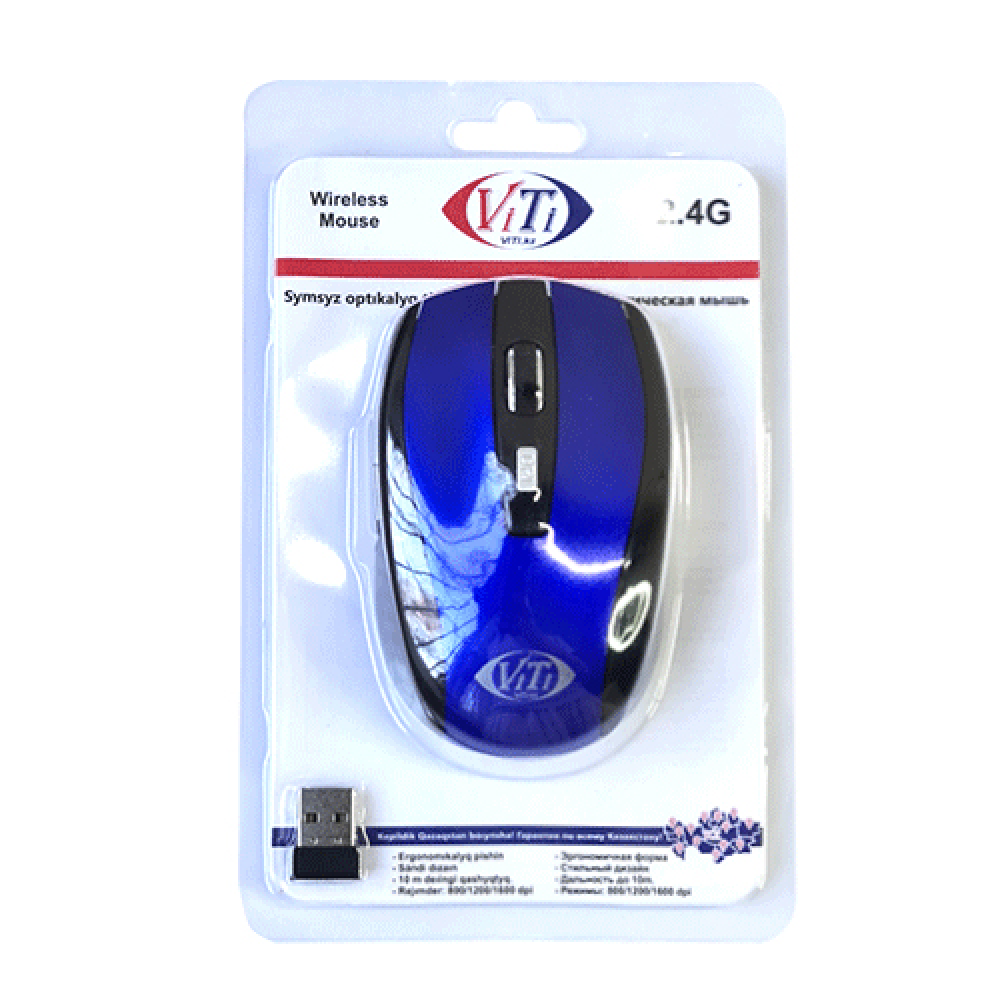 Мышь беспроводная Viti HK068 - это черная беспроводная оптическая мышь с регулируемым разрешением (800-1200-1600 DPI), работающая от двух батареек типа AAA (не входят в комплект) и оснащенная стандартным колесиком прокрутки.