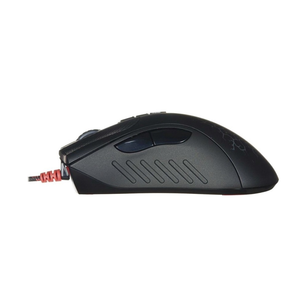 Лазерная проводная игровая мышь средней ценовой категории с 7 настраиваемыми кнопками. Модель может похвастаться удобным эргономичным корпусом, но при этом дизайн изначально заточен для правой руки любых размеров. Благодаря металлическим ножкам изделие легко скользит практически по любой поверхности с минимальным трением. Предусмотрена возможность регулировки веса с помощью грузиков — можно увеличить ее итоговый вес на 19,5 гр. По заявлению производителя, мышь способна выдержать до 20 млн кликов, клавиши нажимаются легко и приятно, без двойных нажатий. Длина кабеля составляет классические 1,8 м. A4 Tech Bloody AL90 может похвастаться великолепным временем отклика на уровне 0,2 мс и технологией калибровки 16-Grade. Максимальное разрешение составляет 8200 DPI, но для его регулировки предусмотрены 5 предустановленных режимов. Встроенные 160 КБ внутренней памяти позволяют запомнить несколько профилеей настроек для разных игроков или игр. Тонкая настройка мыши возможна с помощью фирменного программного обеспечения, поставляемого ко всем мышам серии Bloody.