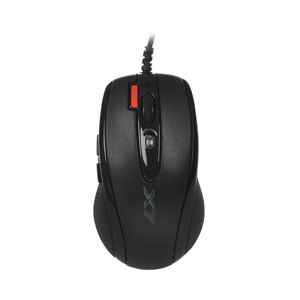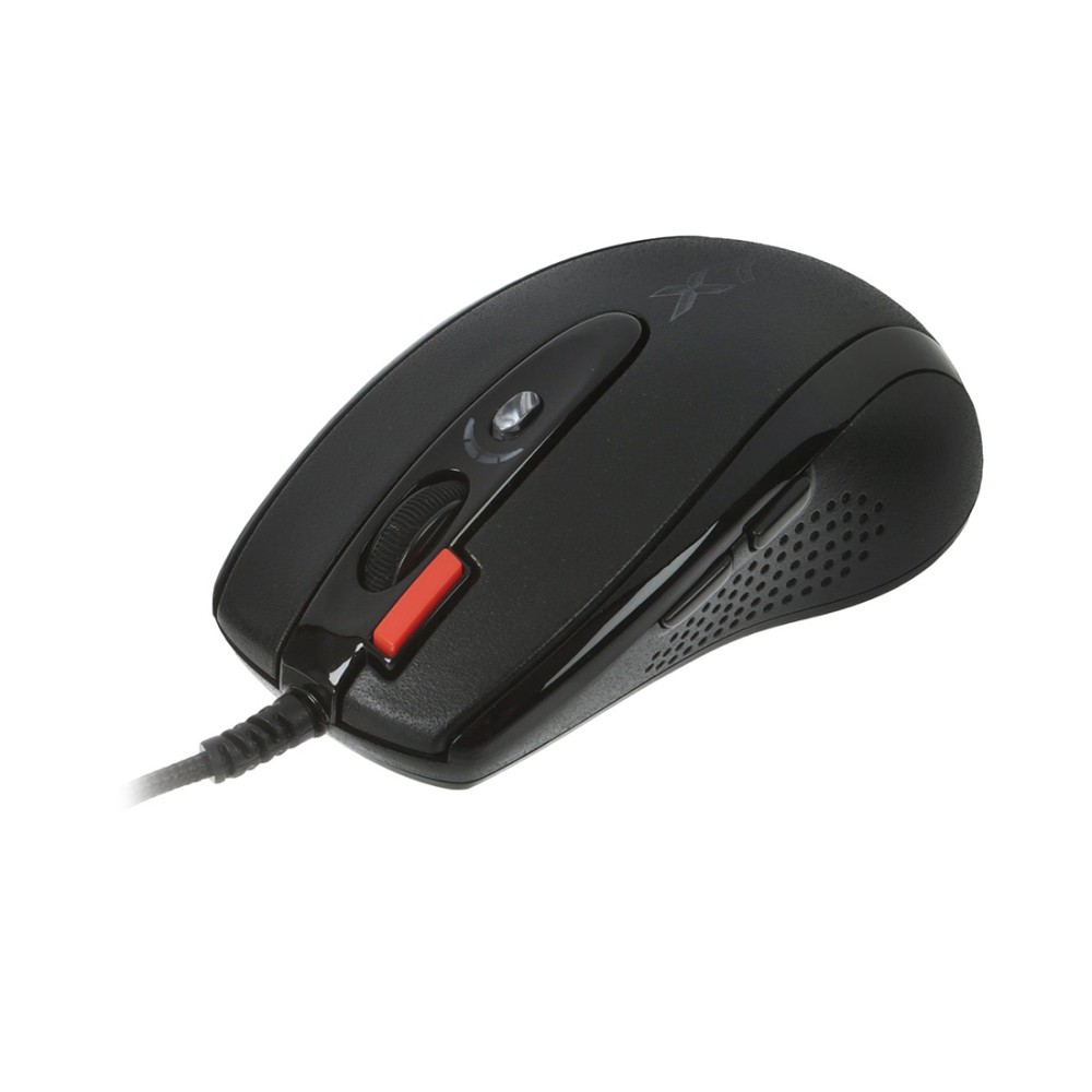 Игровая мышка, которая может послужить хорошим выбором для начинающих и продвинутых геймеров. A4 Tech X-718BK получила прочный и надежный корпус, рабочая поверхность которого имеет покрытие Soft-Touch, обеспечивая удобный и надежный хват. Манипулятор содержит 7 кнопок. Несмотря на статус бюджетного устройства, мышка имеет полноценную поддержку создания макросов, при этом все настройки сохраняются во внутренней памяти манипулятора — для этого выделено 16 КБ. Также мышка получила продвинутую оптику фирмы Agilent. Максимальное разрешение сенсора находится на отметке 3200 dpi, что позволяет использовать манипулятор на любом экране, от стандартного до большого (разрешение Ultra-HD). Для более продуктивной игры в шутерах на борту предусмотрена кнопка тройного клика, обеспечивающая 3 выстрела по нажатию 1 кнопки. Есть опция снижения эффекта отдачи. Максимальное ускорение составляет 15G. Оптический сенсор делает 6500 снимков коврика в секунду. Данный уровень FPS делает перемещение курсора максимально предсказуемым, контролируемым и стабильным. Соединение с компьютером проводное. Частота опроса шины USB достигает отметки 1000 Гц. Весит манипулятор около 140 г.
