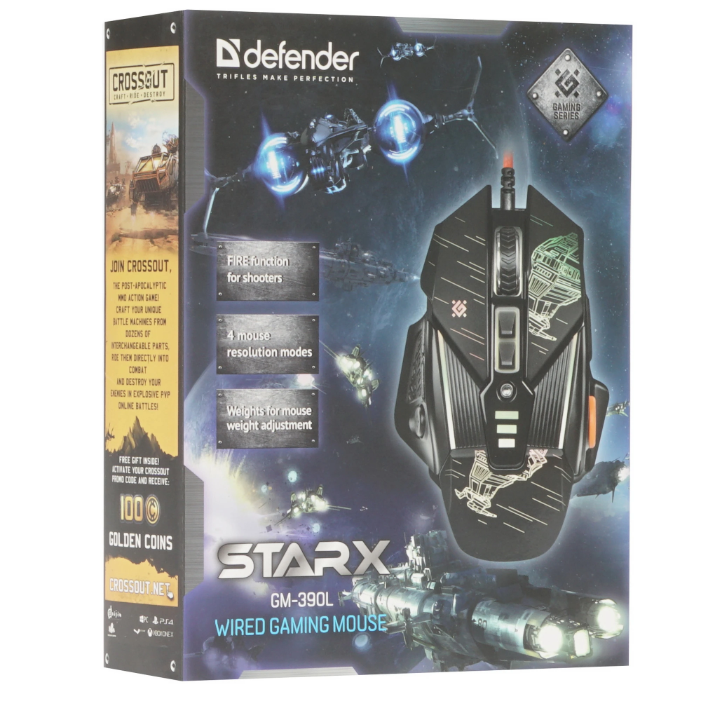 Мышь проводная Defender sTarx GM-390L обладает огромной мощью, поскольку реализует богатый функционал и самые передовые технологии. Благодаря встроенному ПО Game Center вы получаете безграничные возможности, при которых вам будут доступны любые действия в процессе игры. Это оптическая мышь, которая использует светодиодный датчик, обладающий максимальным разрешением 3200 dpi. Благодаря этому вы получаете возможность с предельной точностью управлять любыми процессами. На корпусе находится кнопка, изменяющая показатель разрешения: возможна работа мыши в таких режимах − 800 dpi, 1800 dpi, 2400 dpi, а также 3200 dpi.