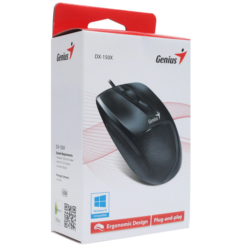 Мышь проводная Genius DX-150X – лаконично исполненное, функциональное, с продуманной эргономикой устройство, с которым отдыхать или работать за ПК – одно удовольствие. Мышь с удобством лежит в руке, не выскальзывает благодаря своему покрытию, легко скользит по рабочей поверхности, не встречая препятствий. За точность и скорость реакций отвечает оптический светодиодный датчик с разрешением 1000 dpi. Длина провода Genius DX-150X равна полутора метрам – достаточно для комфортной эксплуатации устройства.