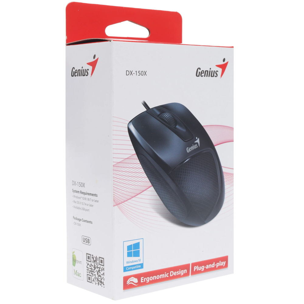 Мышь проводная Genius DX-150X – лаконично исполненное, функциональное, с продуманной эргономикой устройство, с которым отдыхать или работать за ПК – одно удовольствие. Мышь с удобством лежит в руке, не выскальзывает благодаря своему покрытию, легко скользит по рабочей поверхности, не встречая препятствий. За точность и скорость реакций отвечает оптический светодиодный датчик с разрешением 1000 dpi. Длина провода Genius DX-150X равна полутора метрам – достаточно для комфортной эксплуатации устройства.
