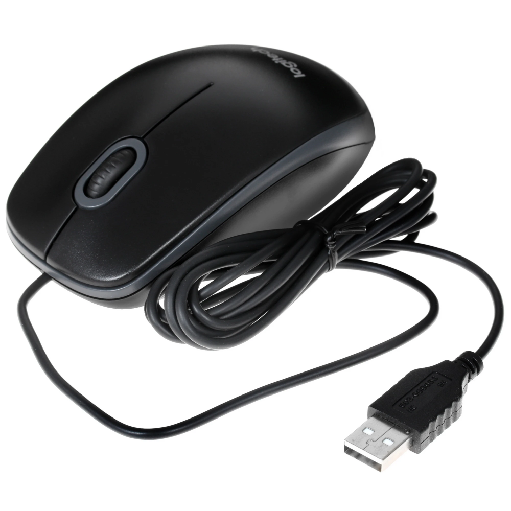 Проводная мышь Logitech B100 из ряда добротных по исполнению мышек Logitech. Модель отличается неброским, но удачным дизайном, очень неприхотливая и уверенно работает на любой возможной рабочей поверхности. Удобный обхват ладонью любой руки обеспечивает симметричная овальная форма корпуса черного цвета с матовым покрытием.