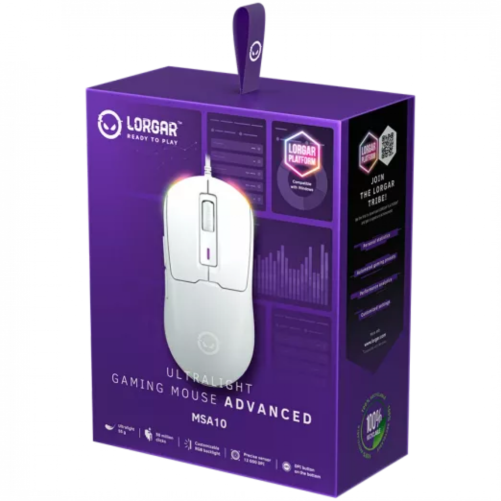Lorgar MSA10 — это ультралегкая проводная игровая мышь, идеально подходящая для динамичных игр и киберспортивных баталий. Высокоточный сенсор PixArt PAW3311 с разрешением до 12 000 DPI и частотой опроса 1000 Гц обеспечивает молниеносную реакцию и точное позиционирование. Симметричный корпус, настраиваемая RGB-подсветка и программируемые кнопки делают MSA10 универсальным инструментом как для новичков, так и для продвинутых геймеров.