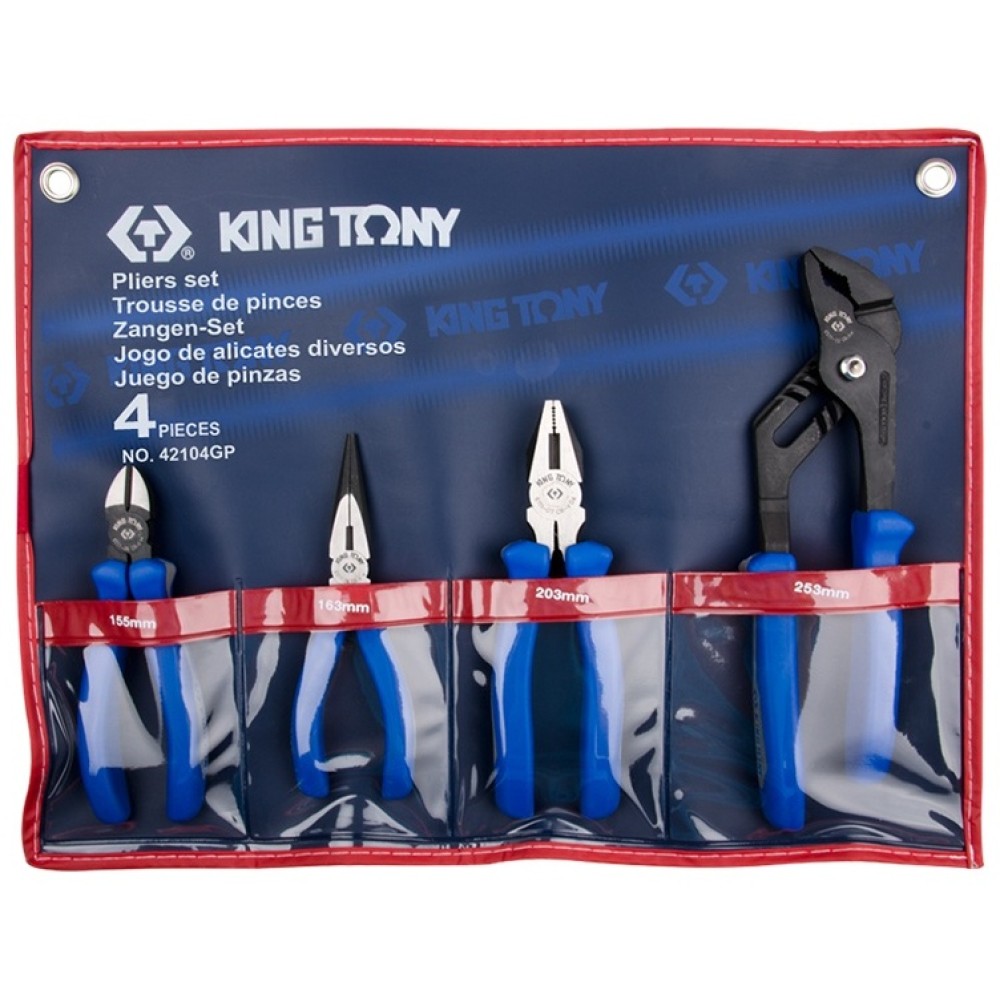 Набор шарнирно-губцевого инструмента **42104GP** состоит из 4 высококачественных ручных инструментов, предназначенных для выполнения различных слесарных, монтажных и электромонтажных работ. В комплект входят: универсальные пассатижи, бокорезы, длинногубцы и переставные клещи. Все инструменты изготовлены из прочной хром-ванадиевой стали, обладающей высокой устойчивостью к деформации и износу. Рабочие части закалены для увеличения срока службы и точности захвата. Рукоятки оснащены двухкомпонентным покрытием для комфортного хвата и предотвращения скольжения во время работы. Инструменты размещены в компактной упаковке, что обеспечивает удобство хранения и транспортировки. Набор отлично подойдёт как для профессиональных мастеров, так и для бытового использования.