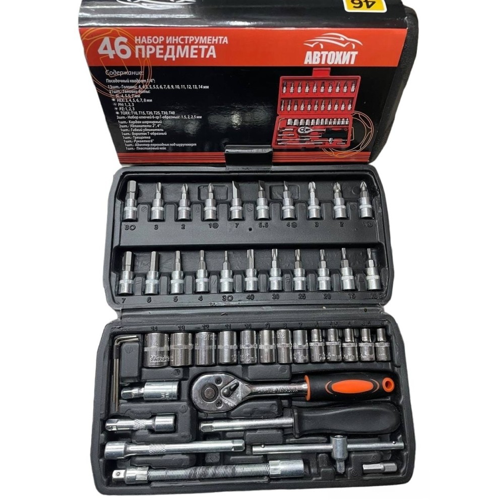 Набор инструментов АвтоХит 46 в 1 — незаменимый помощник для автолюбителей и профессионалов, обеспечивающий высокую функциональность и удобство использования. Этот комплект включает всё необходимое для выполнения различных задач по ремонту и обслуживанию автомобилей.