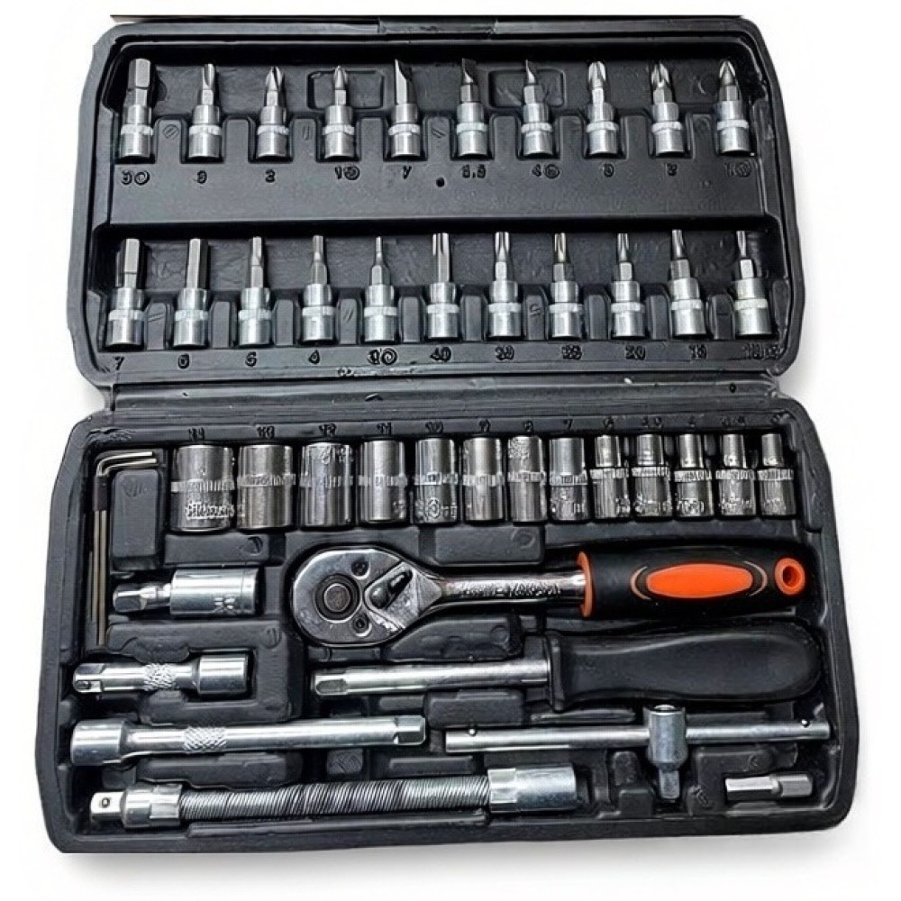 - ✅ 46 предметов в комплекте — широкий выбор инструментов для любых задач.