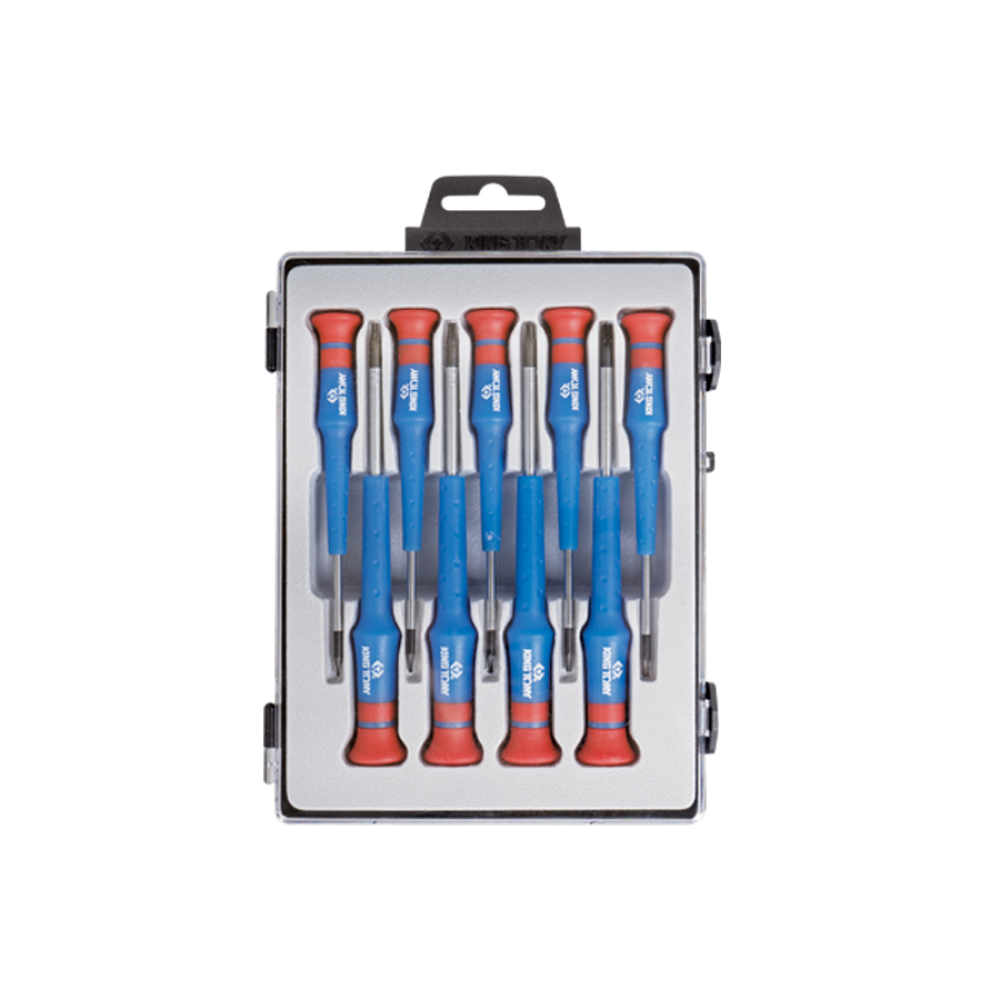 Набор прецизионных отверток TORX (9 предметов) KING TONY 32309PR представляет собой удобный профессиональный инструмент для работы с крепежом. Отвертки активно используются в процессе ремонта электротехники. Каждый элемент набора хранится в специальном углублении.