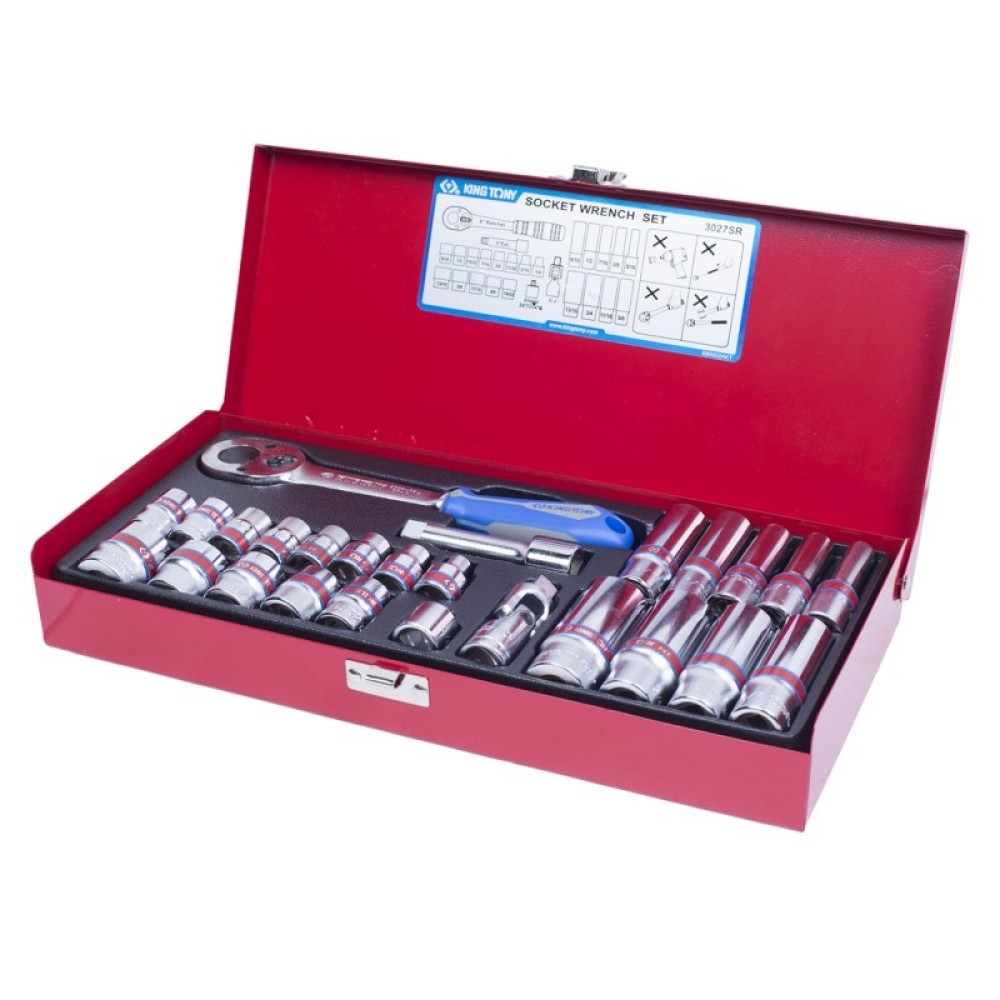 Набор инструментом торговой марки KING TONY включает в себя торцевые головки и принадлежности, предназначен для монтажа и демонтажа крепёжных узлов различных изделий, устройств и агрегатов.