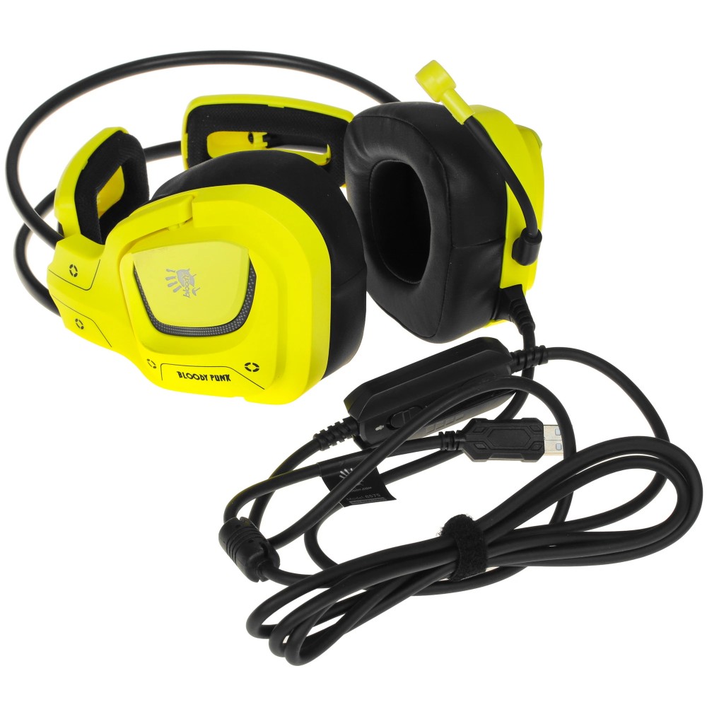Корпус гарнитуры A4Tech Bloody G575 Punk оснащен многоцветной подсветкой, отличается стильным дизайном в стиле Cyberpunk 2077 и выполнен из качественного и легкого пластика. Благодаря этому, а также конструкции охватывающего типа со сдвоенным оголовьем и мягкими амбушюрами модель отлично подойдет для длительного использования.