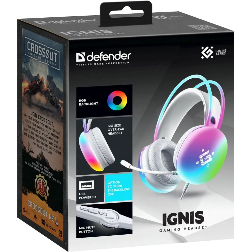 Defender Ignis - игровая гарнитура с переливающейся RGB подсветкой, двойным оголовьем, мягкими комфортными амбушюрами и отличным звуком.