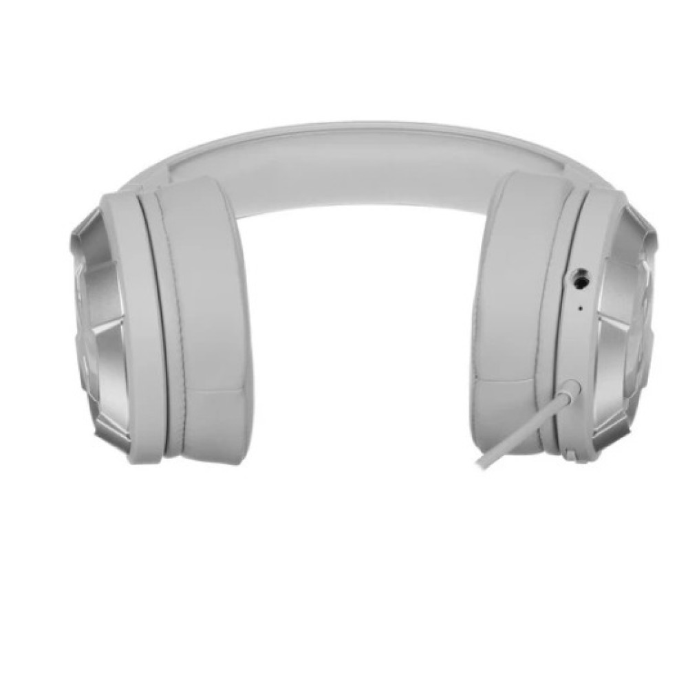 Гарнитура Edifier G30 II выполнена в сером цвете. Регулируемое оголовье адаптируется с учетом анатомических особенностей пользователя. Мягкие амбушюры с отделкой из экокожи плотно прилегают и не вызывают сдавливания. С наружной стороны чаш реализована разноцветная подсветка. Подключение гарнитуры выполняется по кабелю с разъемом USB.