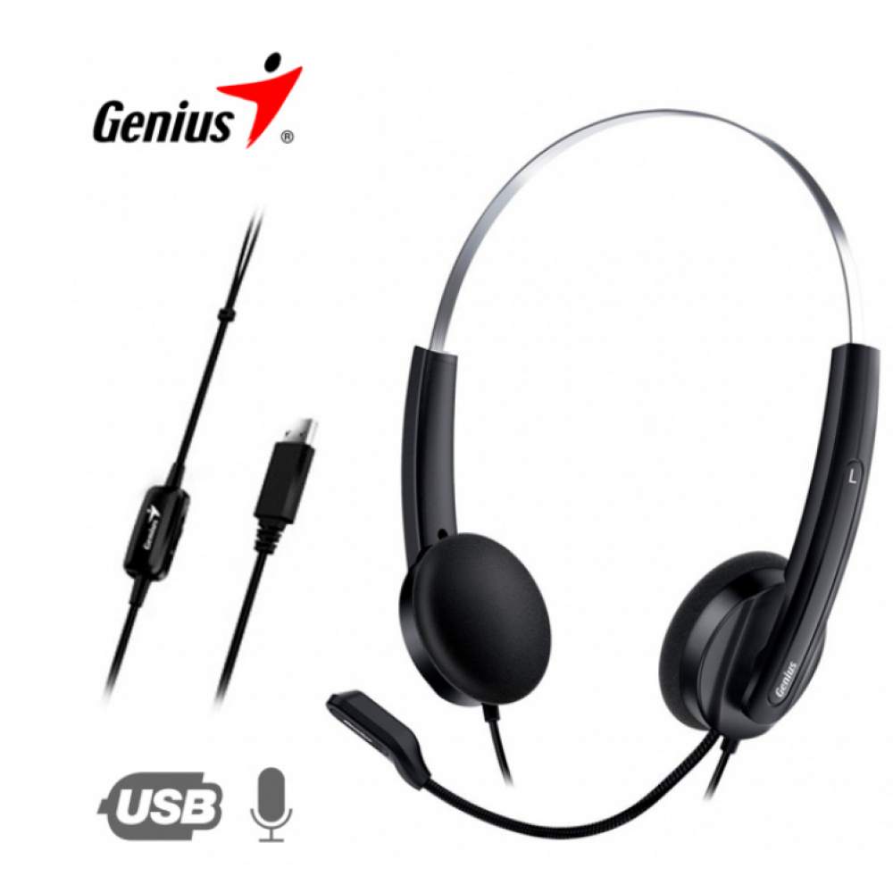 Genius HS-220U – это сверхлегкая USB-гарнитура с оголовьем для голосового чата, видеоконференций, онлайн-обучения или прослушивания музыки.