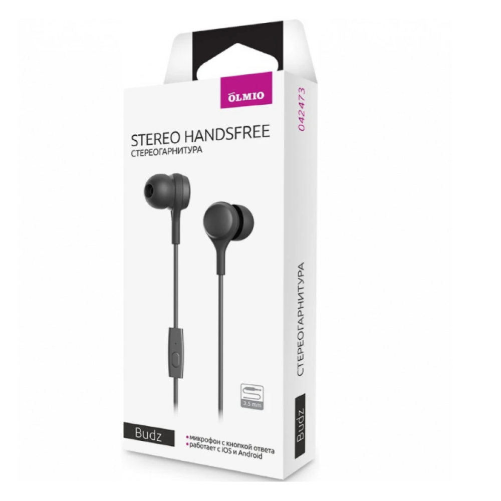 Проводная гарнитура Olmio Budz - оптимальный вариант для использования на каждый день: удобная длина провода, комфортно и плотно сидящие в ухе силиконовые амбушюры. Подойдут для любого вашего устройства, благодаря универсальному разъему 3,5мм. Вкладыши наушников изготовлены из мягкого материала, при этом они плотно держатся в ушах и не натирают при длительном использовании, обеспечивают хорошую громкость звука даже в условиях шумной улицы. Преимущества стереогарнитуры Budz: три размера силиконовых насадок, чтобы аксессуар комфортно ощущался в любом ухе; на проводе установлен чувствительный микрофон с кнопкой ответа; импеданс — 16 Ом — оптимальное значение для портативной электроники.