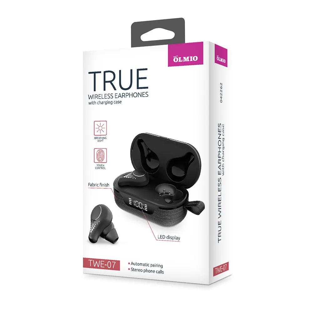 Полностью беспроводные наушники Olmio TWE-07 предназначены для спорта и отдыха и созданы для тех, кто не представляет жизни без любимой музыки, но не хочет опутываться проводами. Это доступная модель с высоким качеством звука, удобным управлением, продуманным дизайном и широким функционалом.