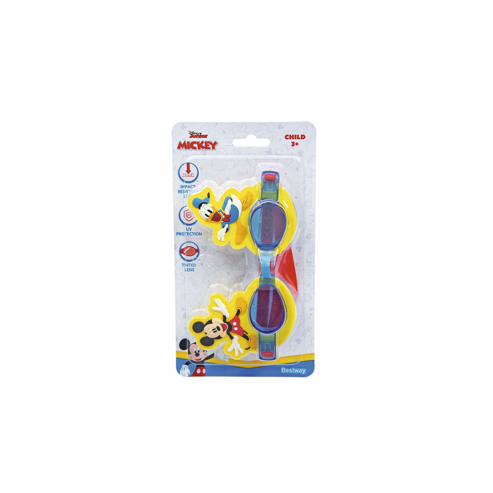 Очки для плавания Goggles, BESTWAY, 9102S, Пластик, 3+, Mickey & Friends, Желто-красные, Блистер Подарите своему ребенку удовольствие от погружения под воду с его любимыми очками для плавания Disney Jr.® Mickey & Friends! Очки для плавания, идеально подходящие для детей от 3 лет, украшены изображениями их дружелюбных приятелей Микки Мауса и Дональда Дака на внешней стороне оправы. Ударопрочные линзы с УФ-защитой: Очки Disney Junior Mickey & Friends имеют цветные ударопрочные линзы из поликарбоната с УФ-защитным покрытием, которые защищают глаза ваших детей от солнца, а также выдерживают обычные удары и падения на террасу бассейна. Удобная посадка: Благодаря мягким удобным наглазникам, регулируемой переносице и силиконовому ремешку эти невероятно забавные очки для плавания позволяют легко подобрать правильную посадку, чтобы ваш ребенок мог дольше наслаждаться плаванием со своими друзьями Disney Junior, не прибегая к постоянным регулировкам. Каждый солнечный день будет наполнен брызгами и смехом благодаря очкам для плавания Disney Junior Mickey & Friends! Мягкая цельная оправа с удобными наглазниками Цветные ударопрочные линзы из поликарбоната с защитным покрытием от ультрафиолетовых лучей Полностью регулируемый силиконовый ремешок 100% не содержит латекса