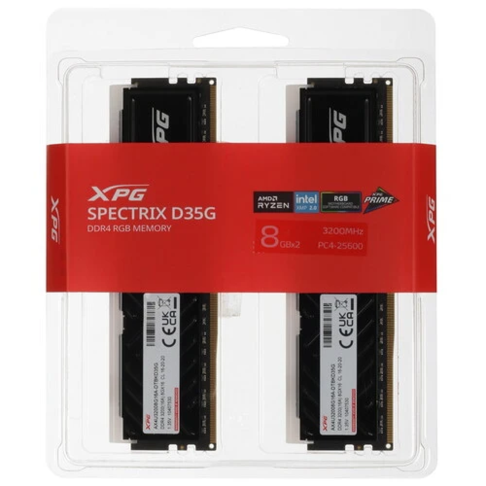 Оперативная память ADATA XPG SPECTRIX D35G RGB [AX4U32008G16A-DTBKD35G] обеспечивает повышение быстродействия на платформах Intel и AMD. Она ориентирована на обслуживание игровых систем. В наборе поставляются два модуля стандарта DDR4 с объемом по 8 ГБ и функционированием на частоте 3200 МГц. Поддержка профилей Intel Extreme (XMP) 2.0 предусматривает разгон платформы.