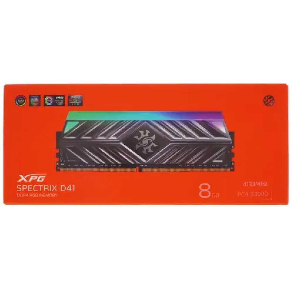 Оперативная память ADATA XPG Spectrix D41 RGB разработана для игровых систем и обеспечивает высокое быстродействие при обработке требовательных ресурсов. Модуль стандарта DDR4 обладает объемом 8 ГБ и тактовой частотой 4133 МГц. Поддержка Intel (XMP) 2.0 позволяет с удобством выполнять разгон. Алюминиевый ребристый радиатор способствует быстрому отведению тепла и выделяется световой планкой в верхней части с интегрированными светодиодами RGB. Программируемая подсветка RGB предлагает широкие возможности для настройки параметров освещения ADATA XPG Spectrix D41.