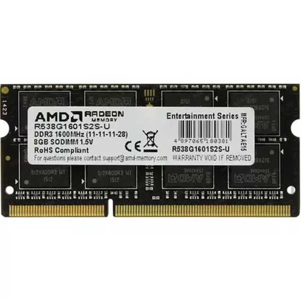 Оперативная память AMD Radeon R5 Entertainment Series DDR3 8GB 1600MHz SO-DIMM предназначена для модернизации ноутбуков, обеспечивая достойную производительность для мультимедиа, работы и повседневных задач. Работает на частоте 1600 МГц с таймингами CL11 и потребляет стандартные 1.5 В.