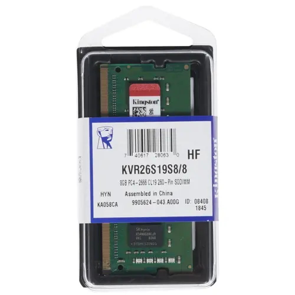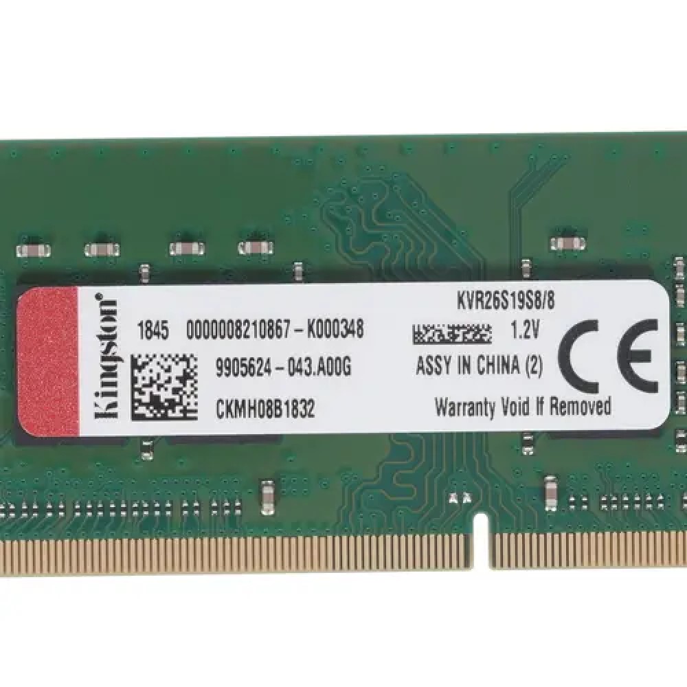 Оперативная память SODIMM Kingston ValueRAM [KVR26S19S8/8] поставляется поштучно. Для наилучших показателей производительности системы рекомендуется устанавливать несколько одинаковых модулей памяти.