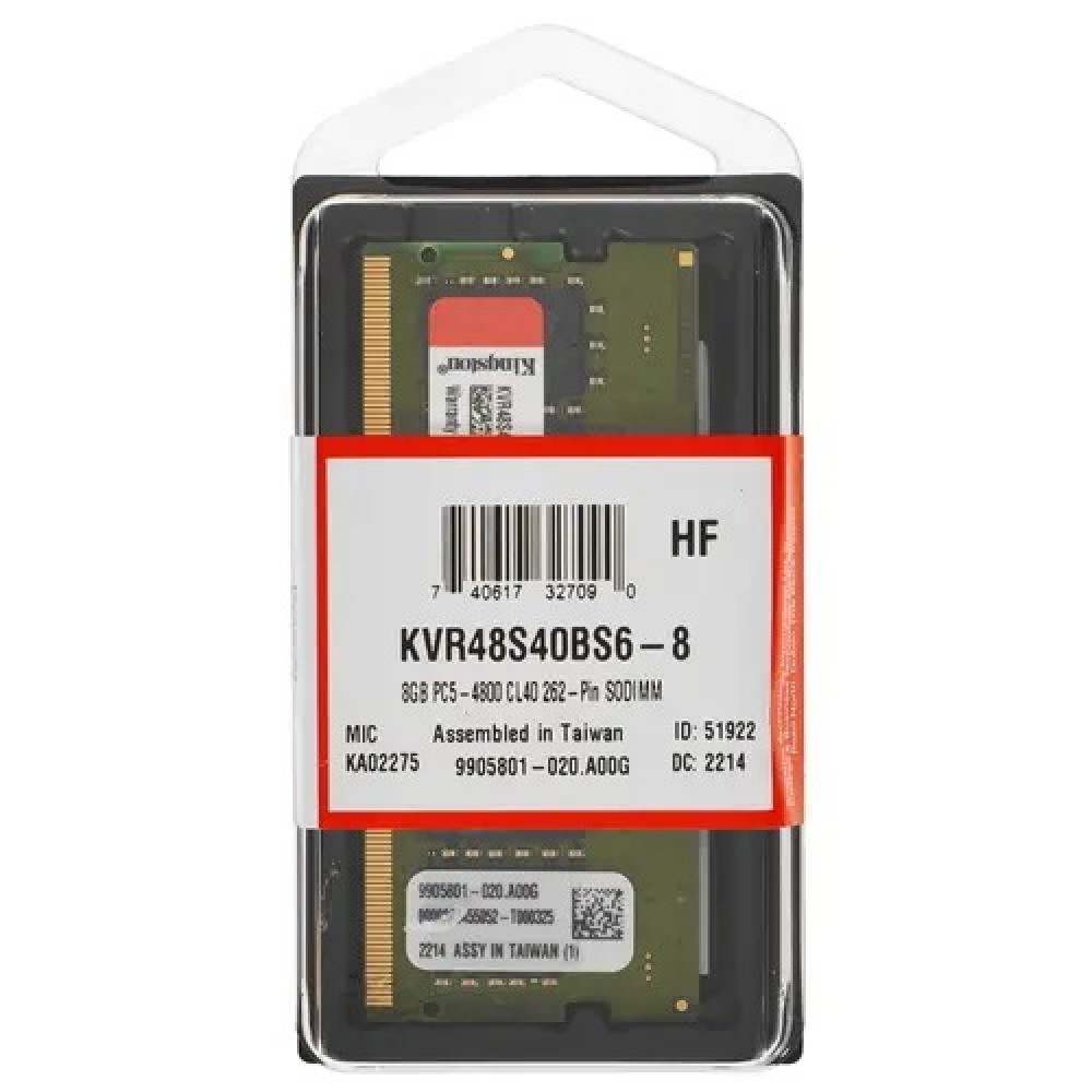 Оперативная память SODIMM Kingston ValueRAM [KVR48S40BS6-8] создана для высокой производительности и стабильной работы системы. Она может быть установлена в ноутбуки и компьютеры, поддерживающие SODIMM-модули.