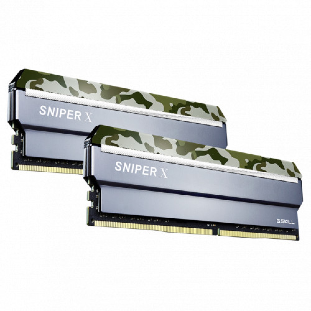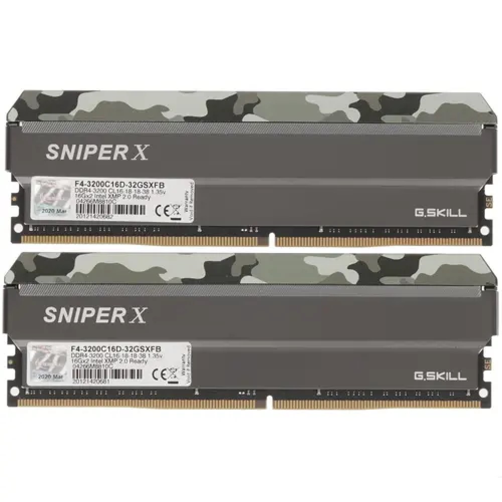 ОЗУ комплекта G.Skill SNIPER X [F4-3200C16D-32GSXFB] 32 ГБ поддерживает эксплуатацию при напряжении питания от 1.2 до 1.35 В, отличаясь сравнительно малым потреблением энергии. Особенностью дизайна этих производительных геймерских компонентов является наличие теплоотводов в камуфляжном исполнении, смонтированных над чипами памяти. Радиаторы не только эстетично выглядят, но и способствуют улучшению рассеивания тепла от теплонагруженных модулей.