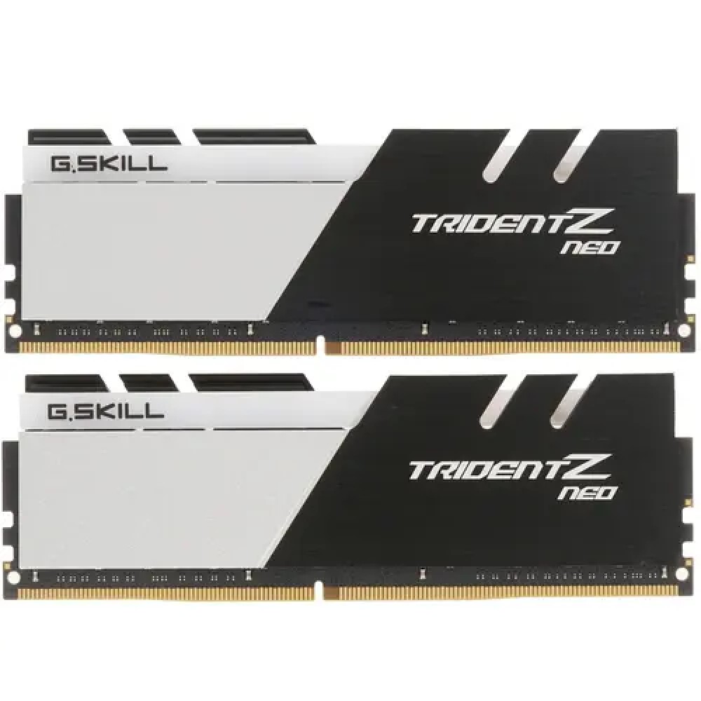 32-гигабайтная оперативная память G.Skill TRIDENT Z Neo RGB [F4-3200C16D-32GTZN] – набор из 2 модулей DDR4 по 16 ГБ. Особенность устройства – необычная «внешность». Помимо нестандартного дизайна радиаторов, память отличается наличием подсветки.