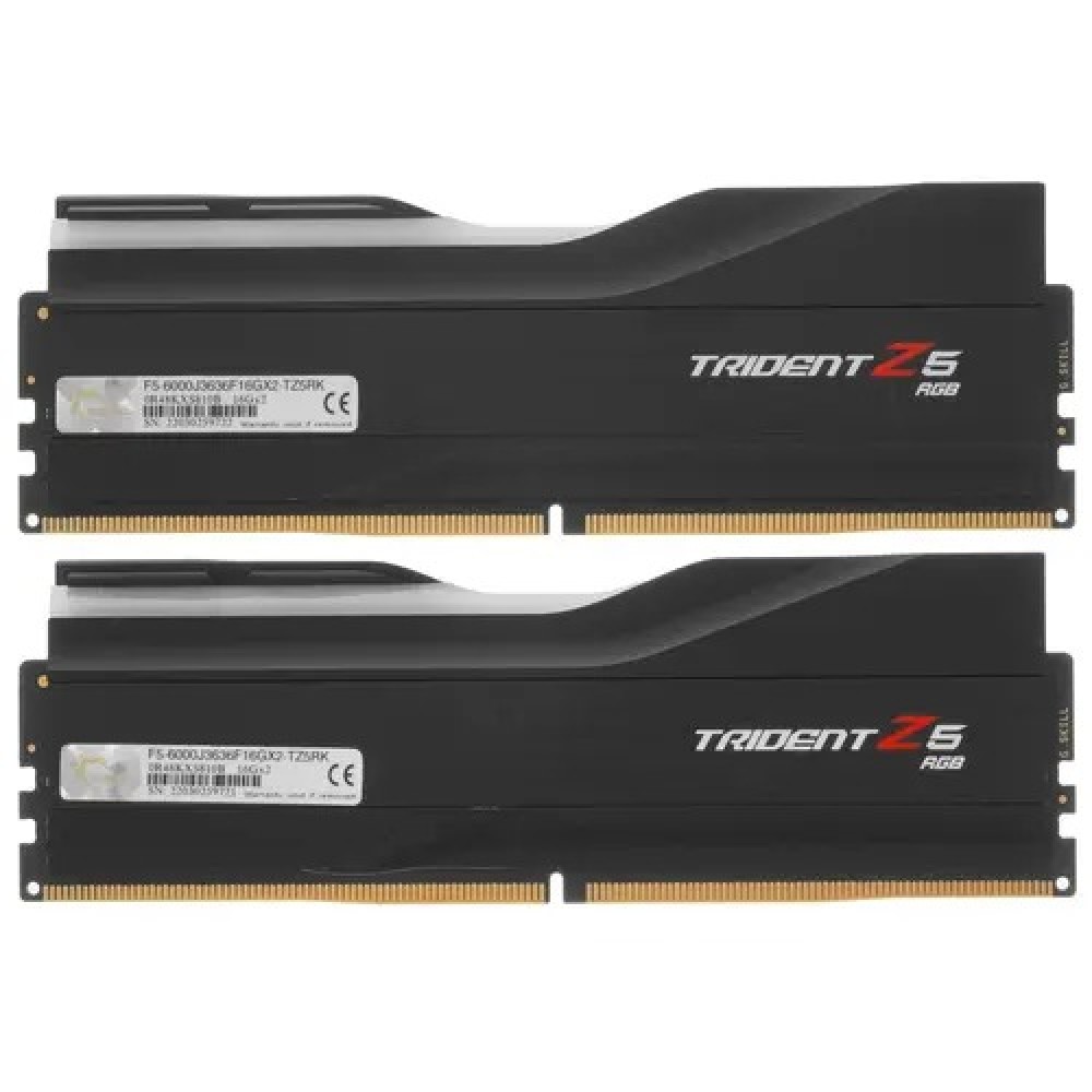 Оперативная память G.Skill Trident Z5 RGB [F5-6000J3636F16GX2-TZ5RK] – 32-гигабайтный комплект, состоящий из пары модулей DDR5. Основное назначение устройства – комплектация игрового компьютера. При этом ничто не помешает вам использовать память при сборке или модернизации производительного ПК универсального назначения. Устройство характеризуется высокой (6000 МГц) тактовой частотой. Разгонный потенциал памяти реализуется благодаря поддержке технологии Intel XMP. Тайминги модулей – 36-36-36-96.