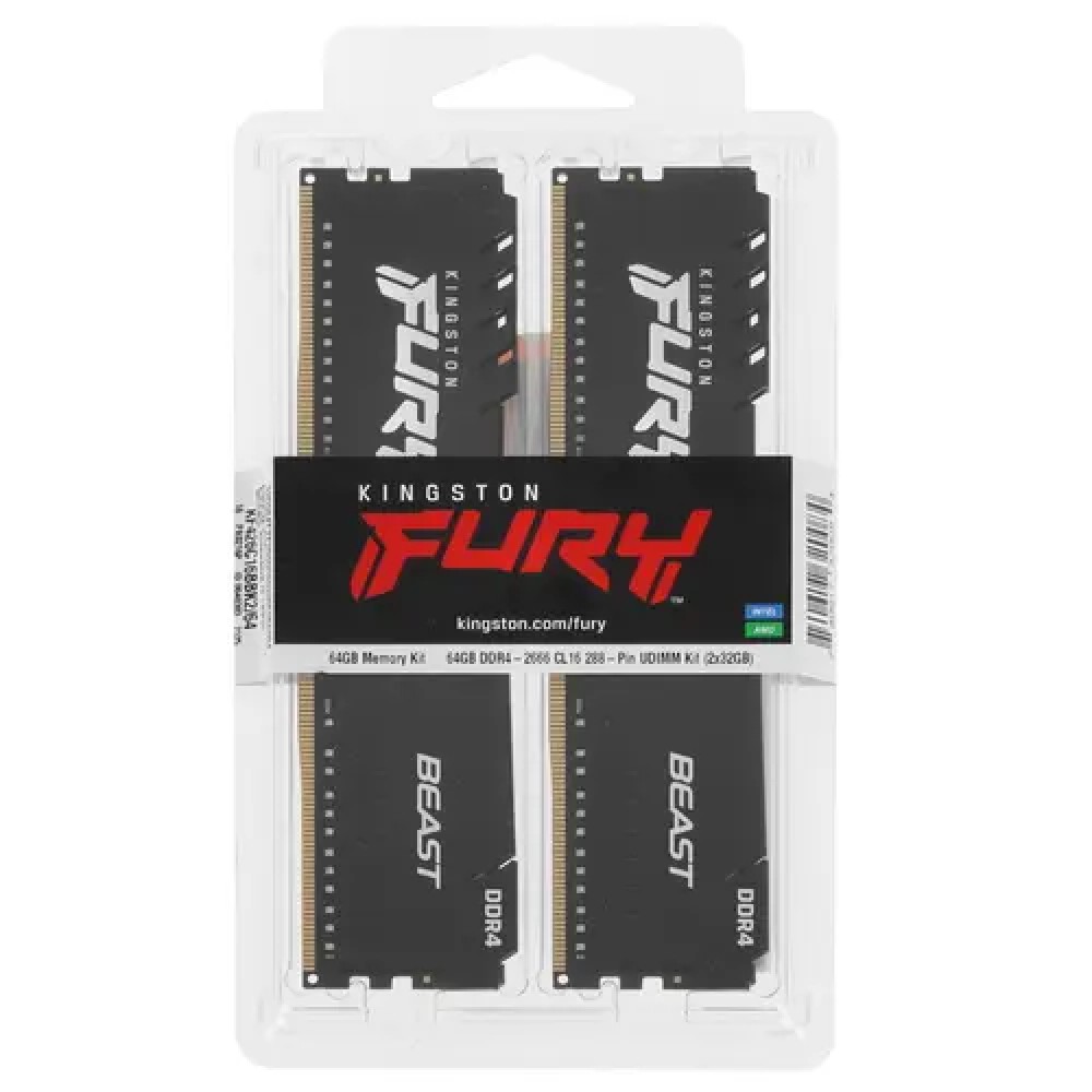 Оперативная память Kingston FURY Beast Black – это комплект из двух модулей суммарным объемом 64 ГБ, оптимизированный для использования в составе мощных вычислительных систем и геймерских ПК. В данном наборе представлены модули с функционированием на частоте 2666 МГц, которые помогают добиться высокой вычислительной мощности и скорости при запуске компьютерных игр. Алюминиевые распределители тепла эффективно охлаждают платы. Высота модулей Kingston FURY Beast составляет 34.1 мм, что гарантирует удобство модернизации и широкую совместимость с комплектующими.