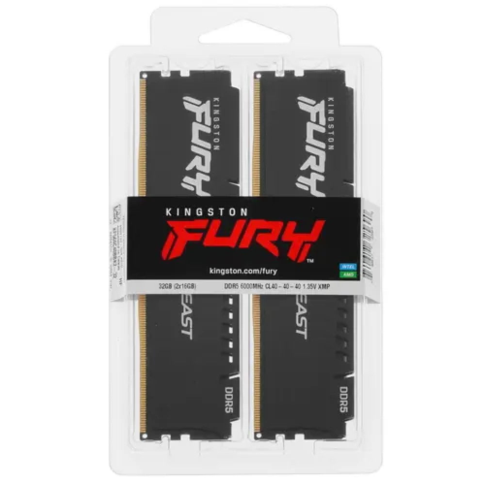 Оперативная память Kingston FURY Beast Black [KF560C40BBK2-32] – 32-гигабайтный комплект, состоящий из пары модулей DDR5. Предназначением устройства является комплектация игрового компьютера высокого класса. Память также достойно себя проявит в составе универсального высокопроизводительного ПК. Тактовая частота модулей красноречива: величина данного показателя равна 6000 МГц. Тайминги памяти – 40-40-40. Поддержка технологии Intel XMP позволяет реализовать разгонный потенциал устройства.