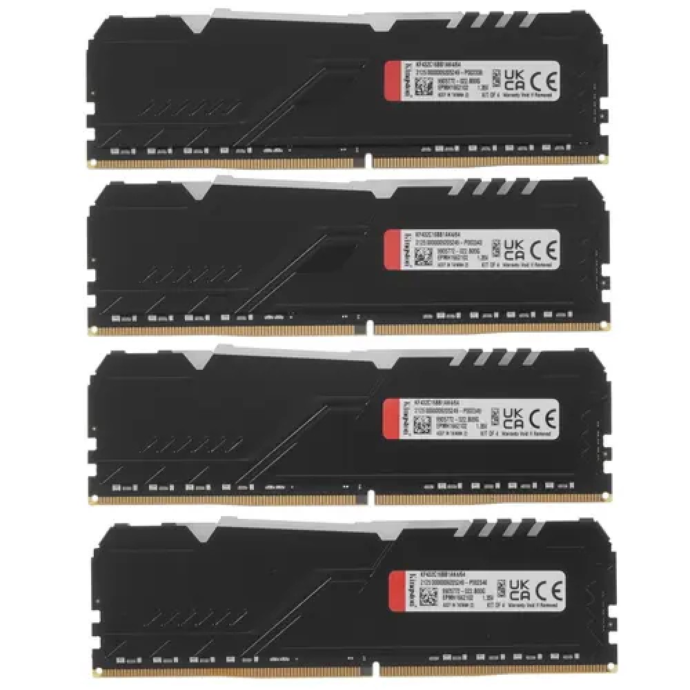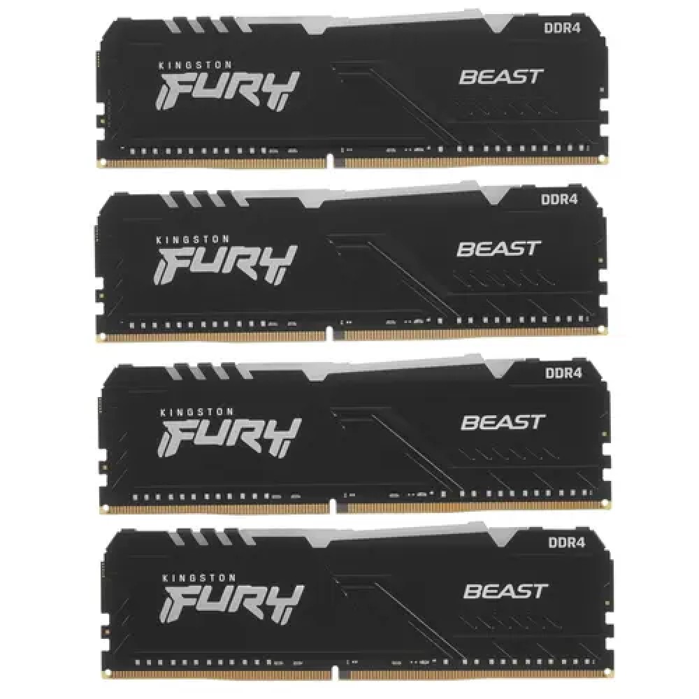 Оперативная память Kingston FURY Beast Black RGB обладает свойствами высокопроизводительного и надежного решения для геймеров. Она выполнена в виде комплекта из четырех модулей, которые выделяются оригинальным оформлением с алюминиевыми радиаторами и мощными техническими характеристиками. Каждый модуль Kingston FURY Beast обладает емкостью 16 ГБ и отличается частотой на уровне значения 3200 МГц. На верхней части планок расположены световые панели с интегрированными светодиодами, формирующими яркую и эффектную подсветку с оттенками палитры RGB.