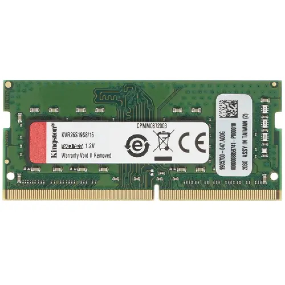 Оперативная память SODIMM Kingston ValueRAM [KVR26S19S8/16] благодаря своим компактным размерам может легко устанавливаться в компактные настольные сборки, ноутбуки, а также в моноблоки. Поддерживается двусторонняя установка. Напряжение питания оперативной памяти составляет 1.2 В. Комплект поставки включает в себя 1 модуль SODIMM Kingston ValueRAM.
