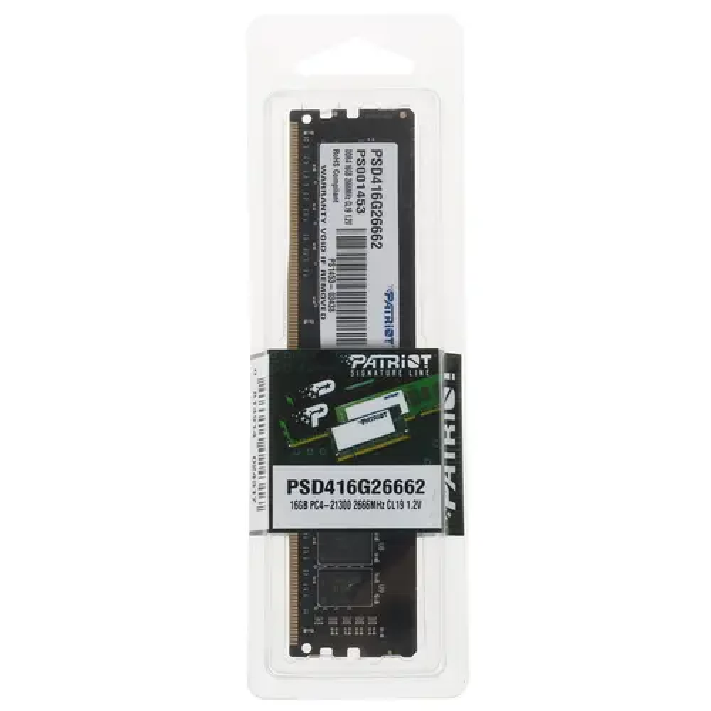 Модуль Patriot Signature Line [PSD416G26662] 16 ГБ выпускается в типоразмере DIMM. Эта планка ставится в соответствующий слот на материнской плате. Владелец ПК сможет самостоятельно выполнить ее подключение к компьютеру.