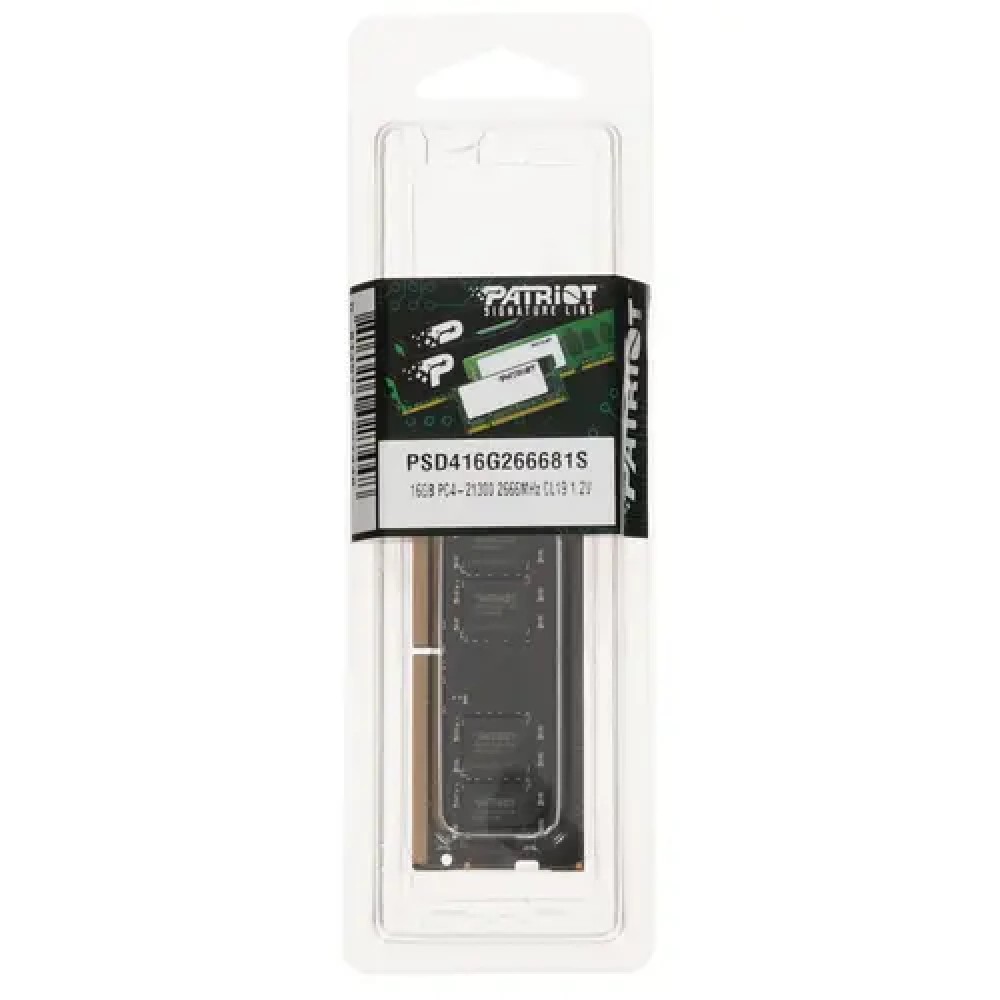 Память Patriot Signature Line выполнена в форм-факторе SODIMM, что делает ее незаменимым источником повышения производительности для любых компьютерных систем небольшого размера, портативных компьютеров и ноутбуков. Модуль с пропускной способностью PC21300 будет работать на пяти уровнях частоты, при том, что максимальная частота соответствует 2666 МГц. Тайминги 19-19-19-43 позволяют не ощущать значительных задержек при обработке данных, а значит работа будет стабильной и плавной.