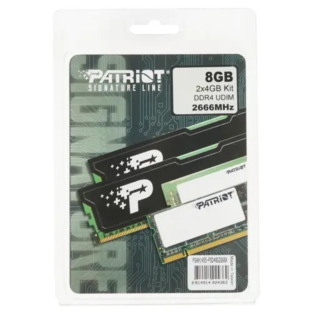 Планки комплекта Patriot Signature Line [PSD48G2666K] 8 ГБ отличаются высотой 31.25 мм и поддерживают работу при входном напряжении 1.2 В. Изделия с расположением чипов памяти по обеим сторонам платы поставляются в блистерной упаковке.