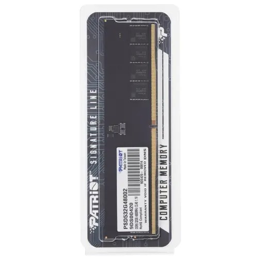 Оперативная память Patriot Signature Line – решение поколения DDR5, поэтому отличается высокой пропускной способностью и помогает значительно ускорить обработку различных компьютерных команд. Она ориентирована на использование в составе рабочих станций и других требовательных систем. Память представлена одним модулем объемом 32 ГБ с частотой 4800 МГц. Встроенная микросхема управления питанием повышает стабильность работы ОЗУ, а технология коррекции ошибок ECC помогает сохранить целостность данных. Пониженное напряжение 1.1 В и небольшая высота дополняют перечень преимуществ Patriot Signature Line.