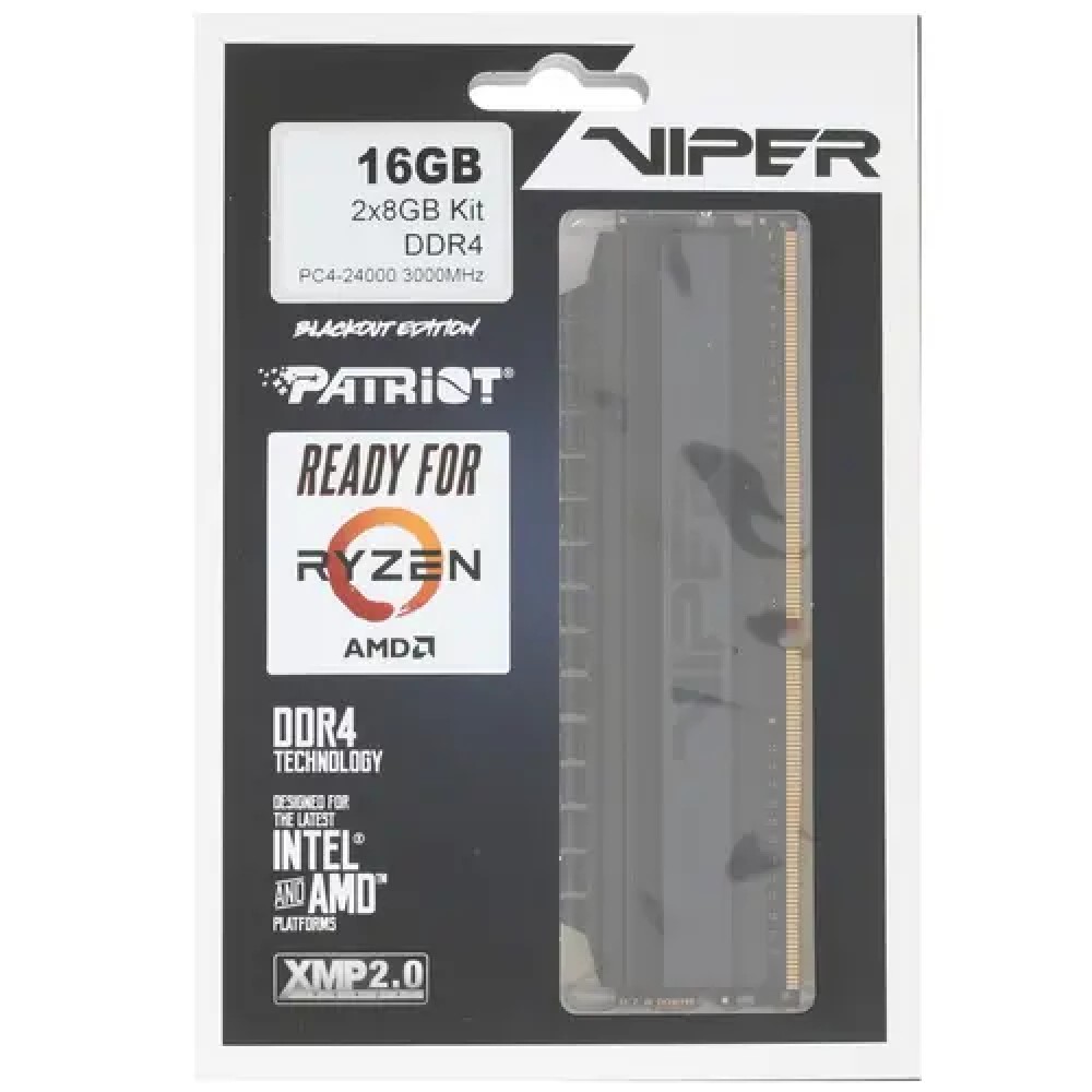 Оперативная память Patriot Viper Blackout [PVB416G300C6K] подходит для комплектации игровых системных блоков и производительных компьютеров широкого назначения. Устройство представляет из себя 16-гигабайтный комплект, состоящий из 2 модулей DDR4 по 8 ГБ. Тактовая частота памяти составляет 3000 МГц, а пропускная способность – 24000 МБ/с. Тайминги модулей – 16-18-18-36.