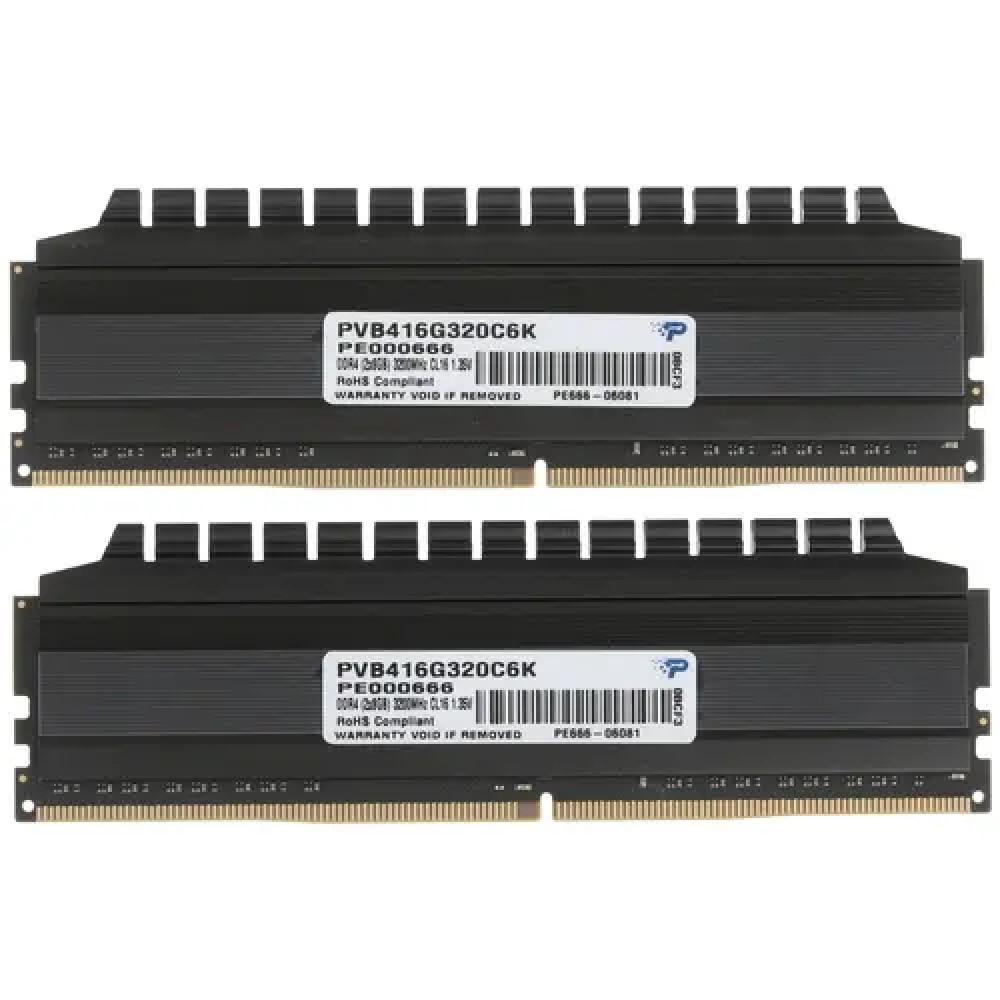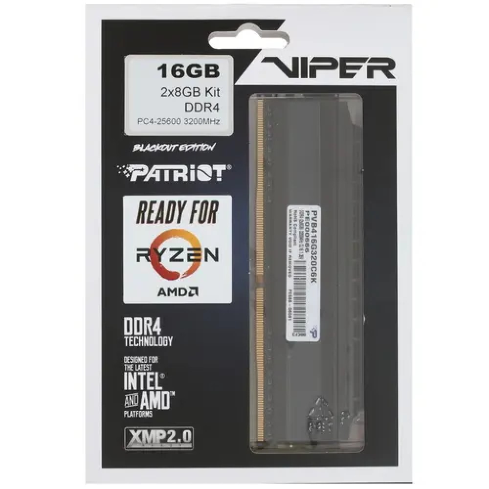 Память Patriot Viper 4 Blackout [PVB416G320C6K] соответствует типу DDR4. Уровень производительности модулей достаточен для эффективного функционирования в составе мощного игрового системного блока. Тактовая частота памяти равна 3200 МГц, а пропускная способность – 25600 МБ/с. Поддерживаются профили Intel XMP. Напряжение питания памяти составляет 1.35 В. Комплект поставляется в презентабельно выглядящей упаковке.