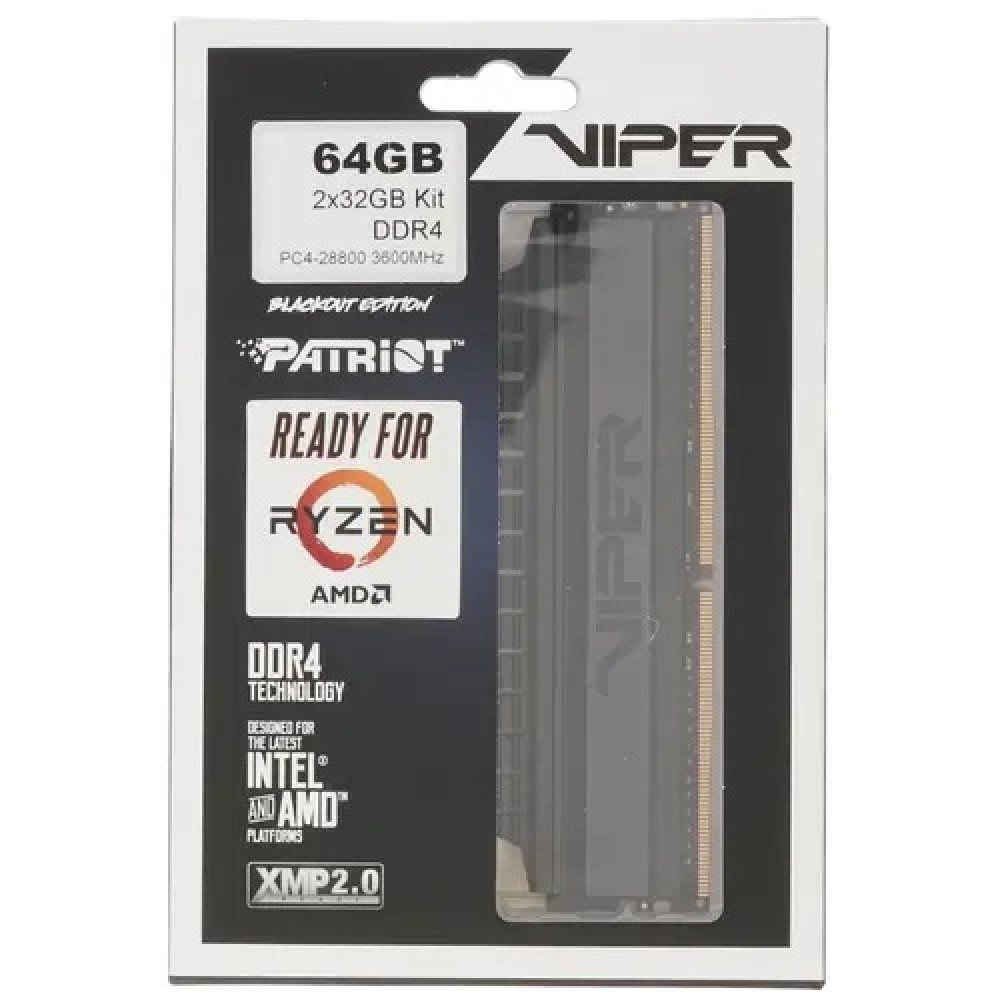 Оперативная память Patriot Viper 4 Blackout [PVB464G360C8K] имеет оригинальное название и не менее оригинальный внешний вид. Модули (в комплекте их два) «ощетинились» массивными зубчатыми радиаторами черного цвета. Суммарный объем комплекта составляет 64 ГБ. Такое количество памяти достаточно для эффективного функционирования подавляющего большинства компьютеров.