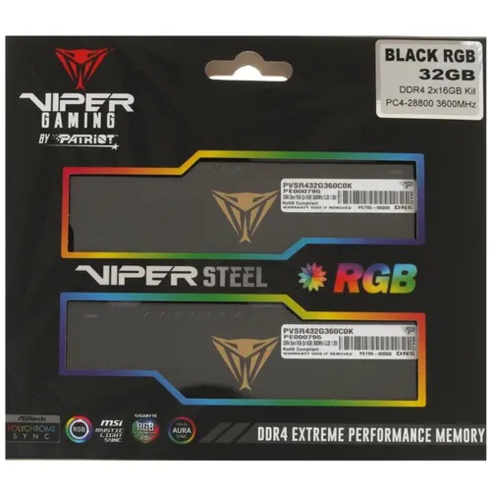 Оперативная память Patriot Viper Steel RGB [PVSR432G360C0K] – это DDR4-решение для выполнения практически любых задач, которые ставятся перед компьютером. Эта модель состоит из 2 модулей на 16 ГБ, что вместе с поддержкой высоких рабочих частот и малой задержкой обеспечит высокое быстродействие и производительность как для работы, так и для развлечений.