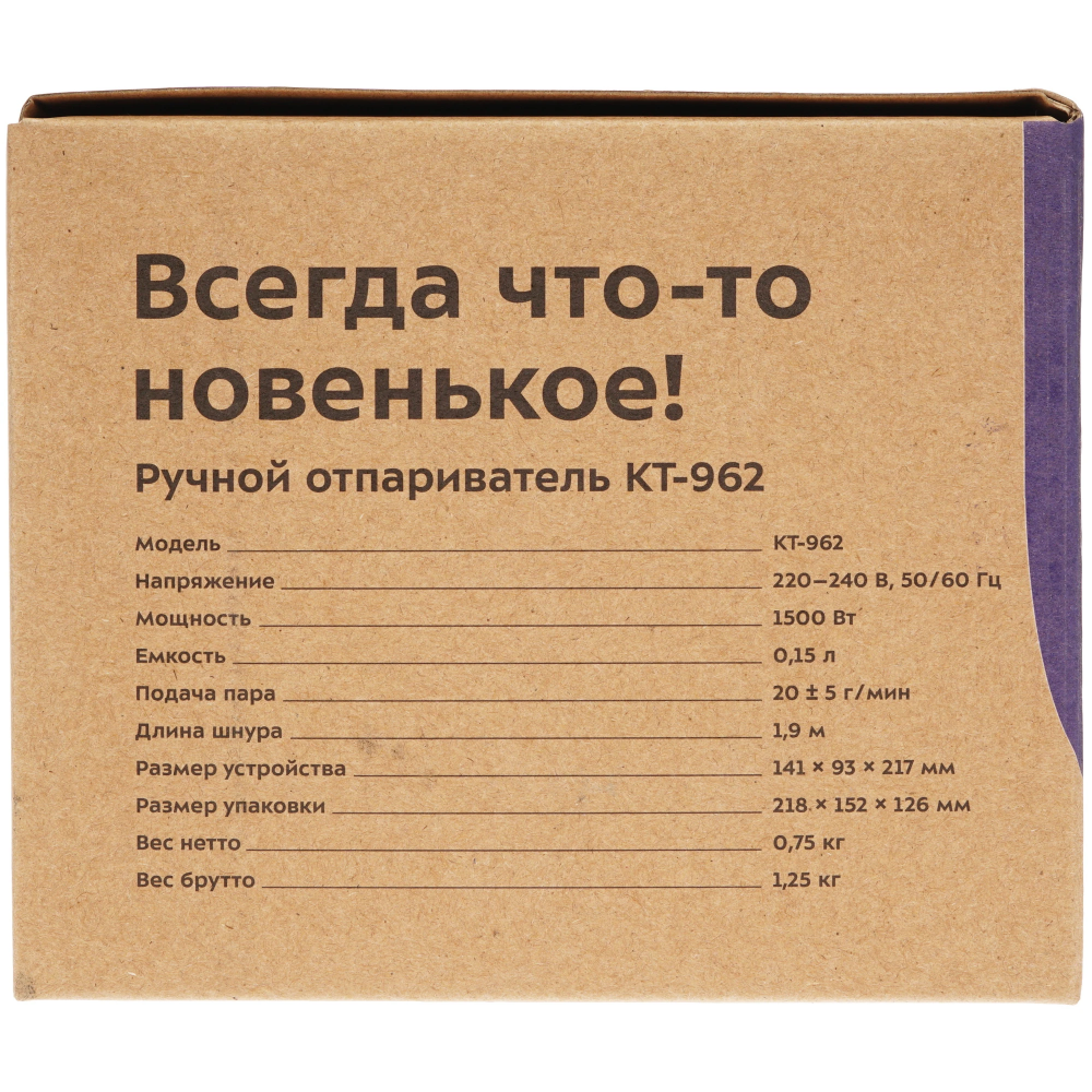 Устройство Kitfort КТ-962 действует при температуре нагрева 140°C и потоке пара 20 г/мин, что способствует быстрому и эффективному отпариванию ткани. Конструкция дополнена кабелем длиной 1.9 м и индикатором готовности пара. Поставка осуществляется вместе с мерным стаканчиком. Прибор весит 750 г и обладает размерами 14.1x9.3x21.7 см.