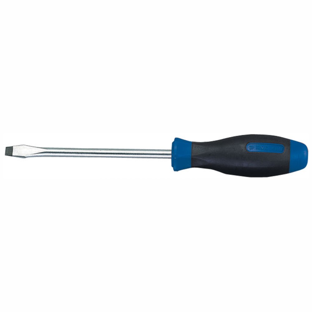 Отвертка шлицевая KING TONY SL8,0x175мм 14220807 - представляет собой профессиональный ручной инструмент для отвинчивания и завинчивания крепежа со шлицевым рабочим профилем. Стержень отвертки изготовлен из хром-молибден-ванадиевого стального сплава. Ручка из маслобензостойкого двухкомпонентного материала (полипропилен + термопластичная резина) исключает проскальзывание инструмента в руке оператора. Изделие отвечает требованиям международного стандарта качества DIN ISO 2380.