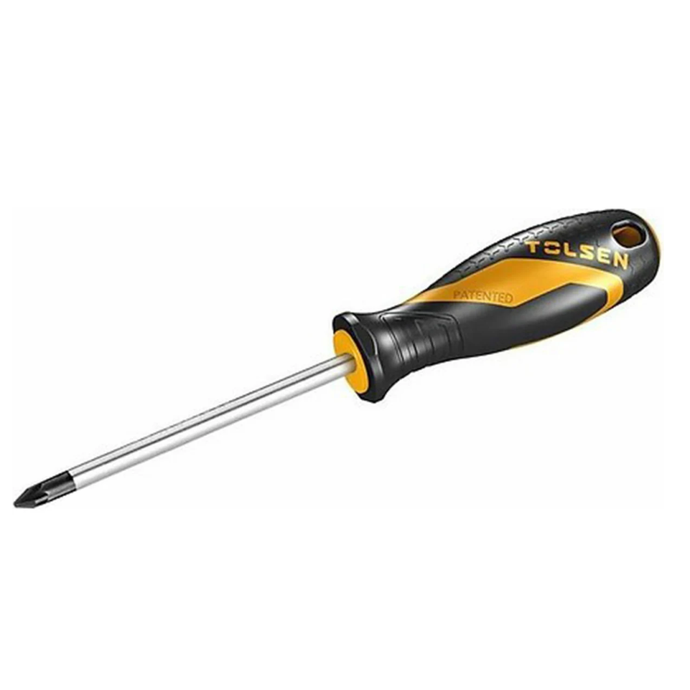 Отвертка TOLSEN крестовая Comfort с двухкомпонентной ручкой Cr-V PH1x100мм 20007 обеспечивает эффективную работу с крепежом. Используется прочная двухкомпонентная рукоятка, которая имеет значительную ширину и увеличивает вращательный момент. Рукоять не скользит даже в мокрых ладонях. Это повышает безопасность эксплуатации инструмента вне зависимости от внешних условий.