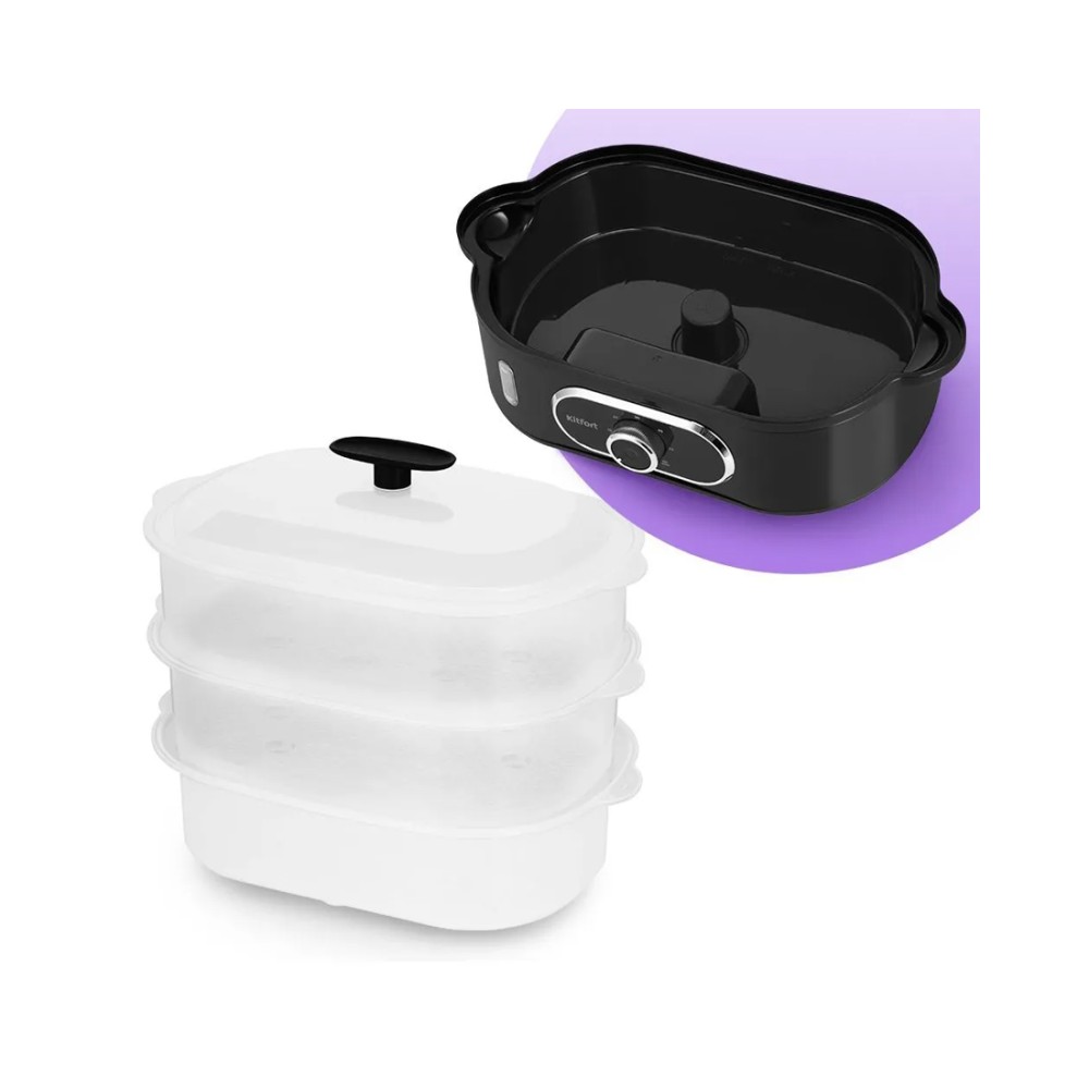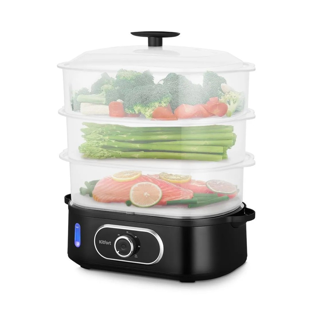 Продукты, приготовленные в пароварке КТ-6301, получаются нежными, мягкими и сочными. В пароварке можно легко готовить мясо, рыбу, овощи. Прибор оснащен тремя паровыми корзинами, что позволит приготовить обед или ужин из нескольких блюд сразу на всю семью.
