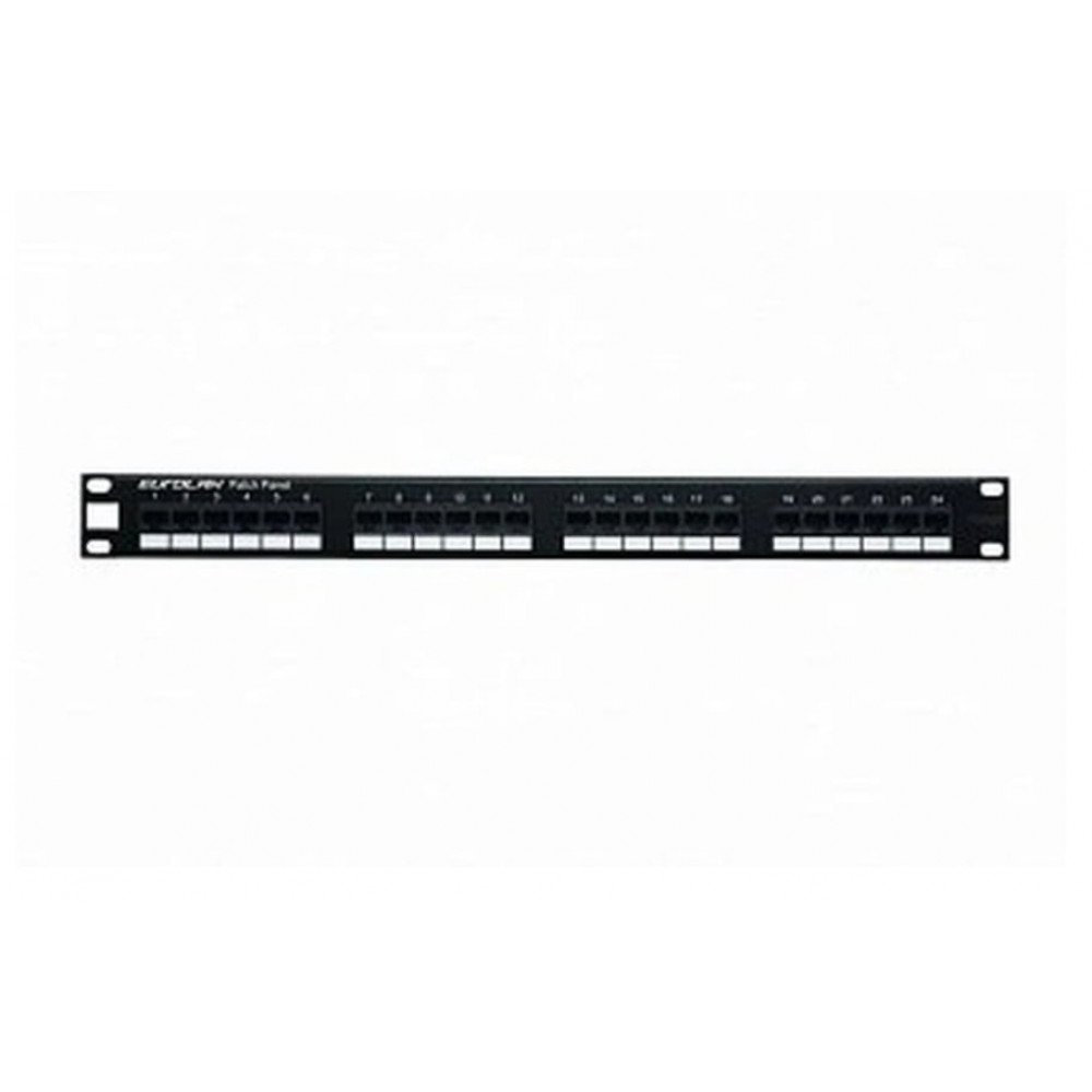 Коммутационная панель EUROLAN, моноблочная, 19", 1U, категория 5e, UTP, 24 порта, черного цвета, предназначена для организации структурированных кабельных систем в локальных сетях. Панель оснащена 24 портами RJ-45 для подключения неэкранированного кабеля категории 5e и обеспечивает надежное, аккуратное и упорядоченное соединение сетевых кабелей. Монтаж панели осуществляется в стандартную 19-дюймовую стойку, высота панели составляет 1U. Панель подходит для использования в офисах, дата-центрах и других местах, где требуется организация кабельной инфраструктуры с надежным и удобным доступом к портам.