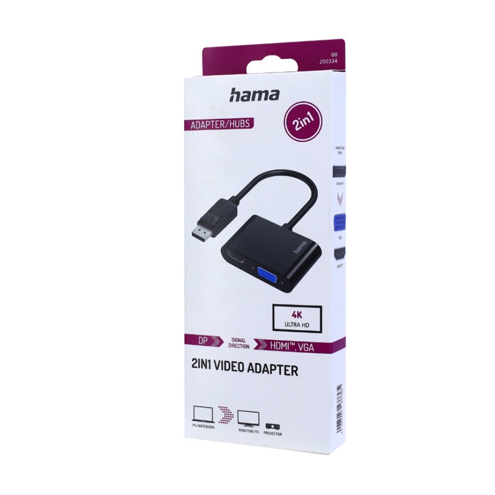 Конвертер Hama 00200334 черного цвета оборудован одним портом HDMI, одним портом VGA и одним портом MiniDisplayPort.
