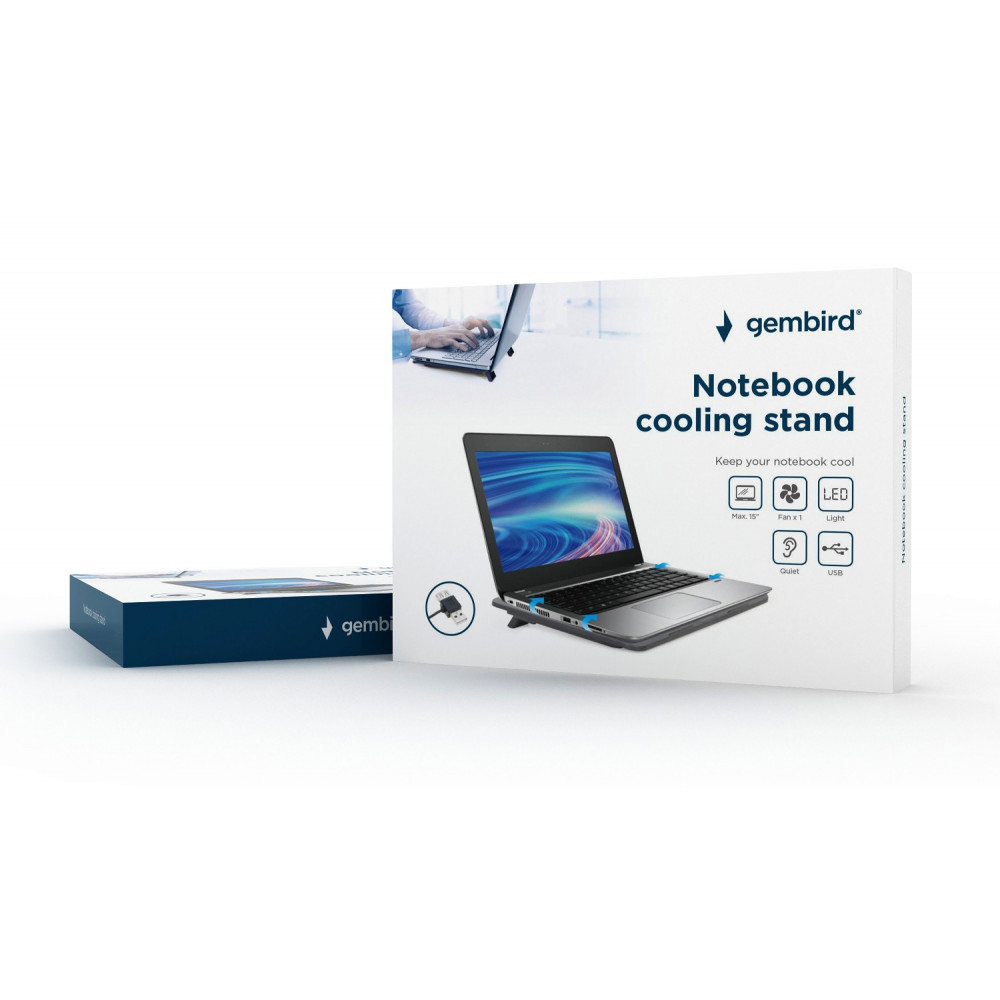 Gembird NBS-1F15-04 — компактная охлаждающая подставка для ноутбуков до 15,6 дюймов. Оснащена тихим вентилятором, который эффективно снижает температуру корпуса, предотвращает перегрев и продлевает срок службы устройства. Эргономичный дизайн и легкая конструкция делают её удобной для работы дома, в офисе или в поездках.