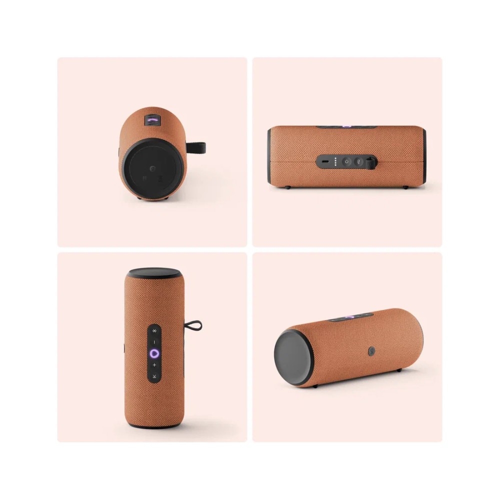 Благодаря высокому классу защиты IP67 Яндекс Станция Стрит устойчива к пыли и воде⁴, а ткань приглушённых цветов не выгорает на солнце. Если в зарядный разъём попадёт вода, Алиса сама напомнит просушить колонку.