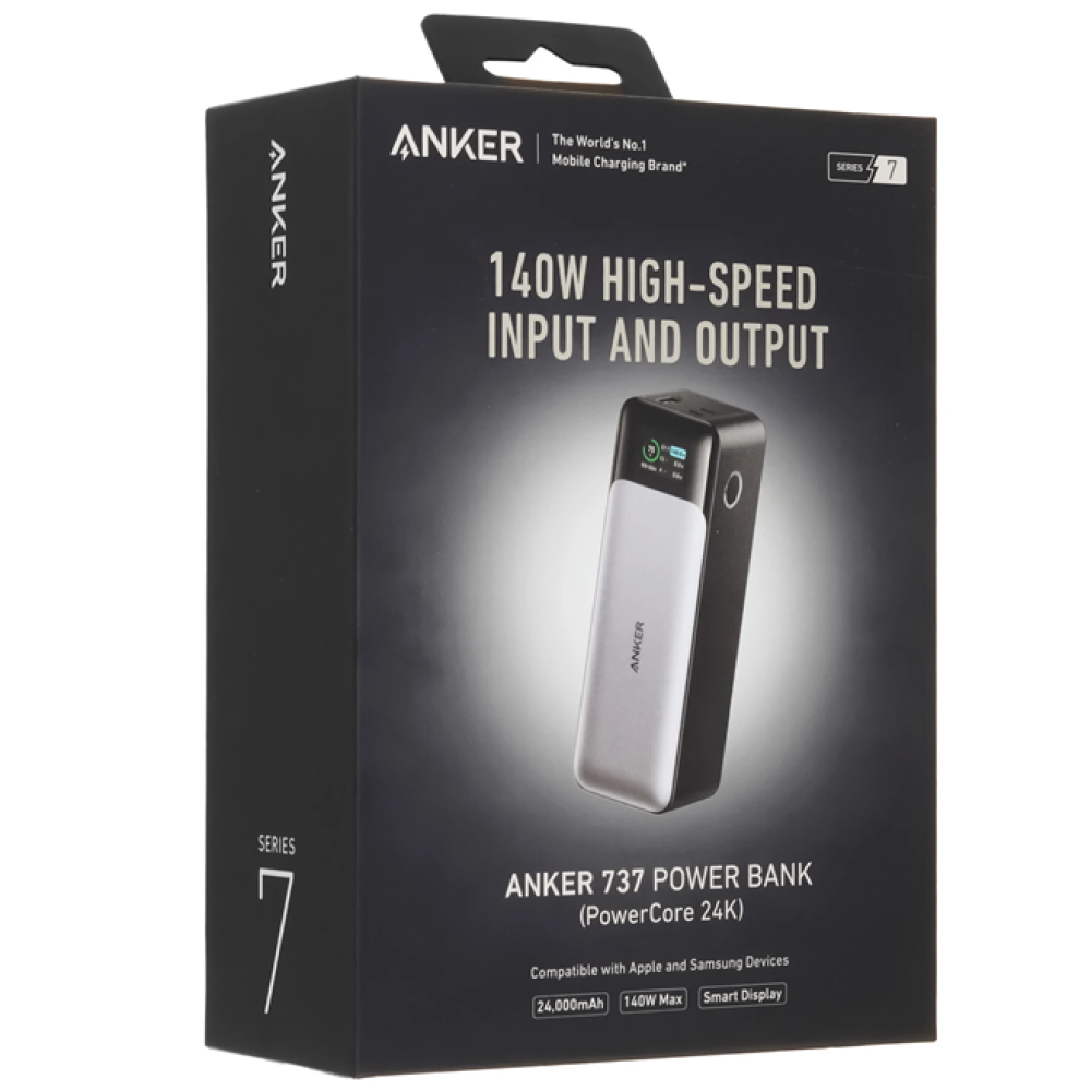 Anker 737 Power Bank (GaNPrime PowerCore 24K) — это флагманский внешний аккумулятор, ставший эталоном мощности и технологий. Модель A1289 создана для тех, кому нужно заряжать ноутбуки, планшеты и смартфоны на максимальной скорости в любых условиях.